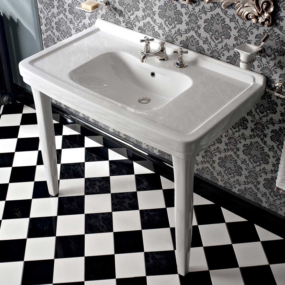 105 cm Vintage White Ceramic Bathroom Console with Feet, Made in Italy - Marwa