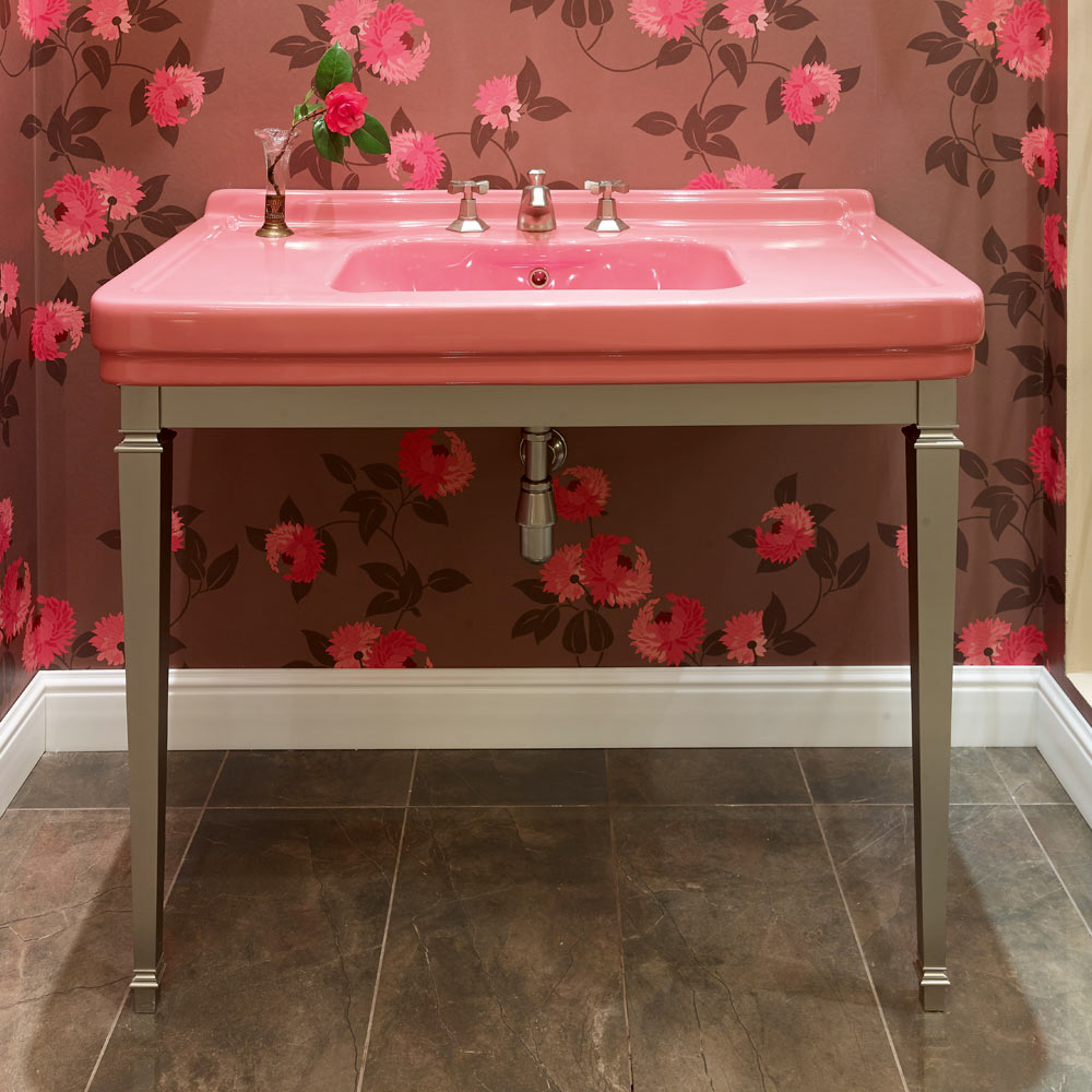 White ceramic bathroom console with metal feet, vintage Marwa style, made in Italy.
