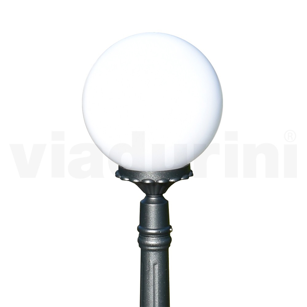 Garden lamp made with an anthracite finish die-cast aluminum structure and opal acrylic sphere diffuser, entirely Made in Italy.
