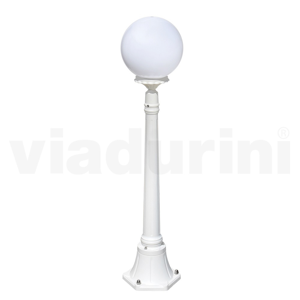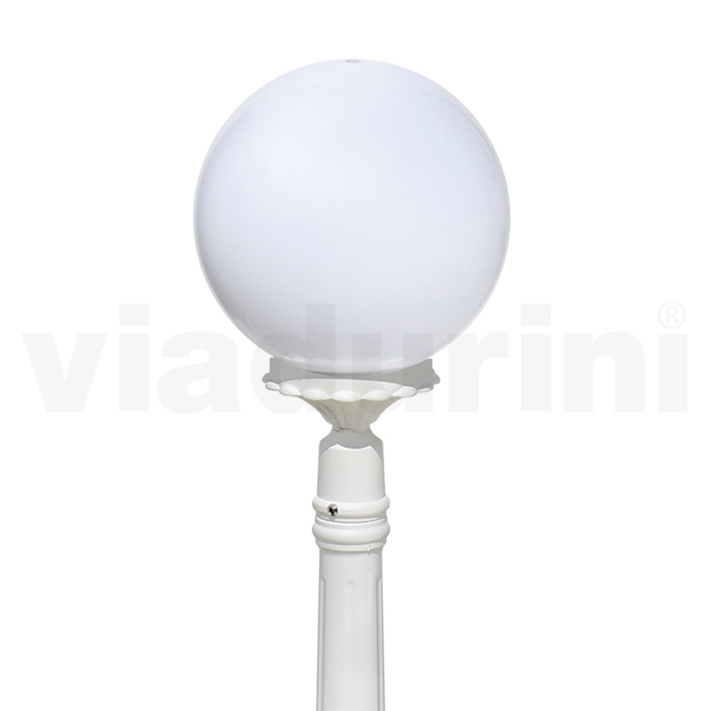 Garden lamp made with a die-cast aluminum structure and opal acrylic sphere diffuser, entirely Made in Italy.