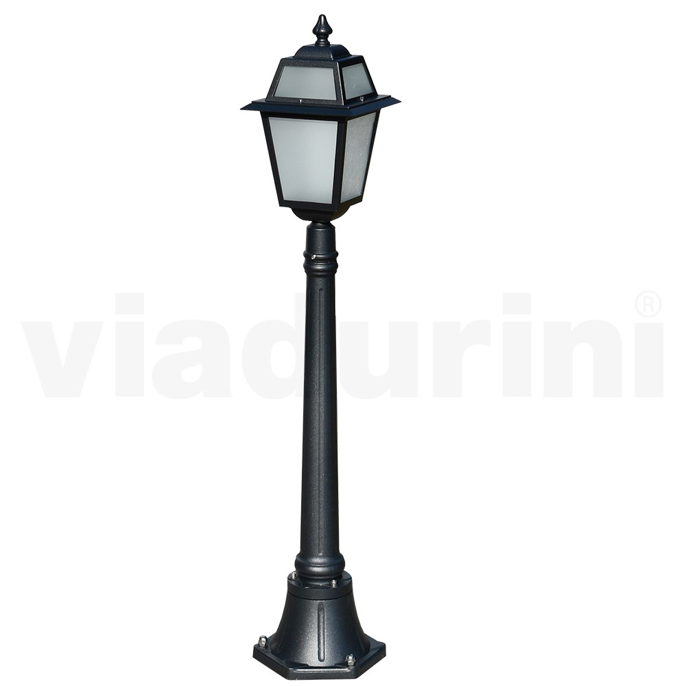 Made in Italy. This cast aluminum street lamp with its anthracite finish is a stylish choice for any outdoor setting. With a classic and elegant design, it features crafted details that evoke an atmosphere of times gone by. The lantern, with attention to the smallest details, diffuses a warm and soft light, ideal for creating a luminous path in your garden or for classily delimiting an outdoor relaxation area. Solidity and beauty come together in this street lamp, designed to last over time and resist atmospheric agents. Elegant and functional , it will be the luminous signature of your outdoor space.