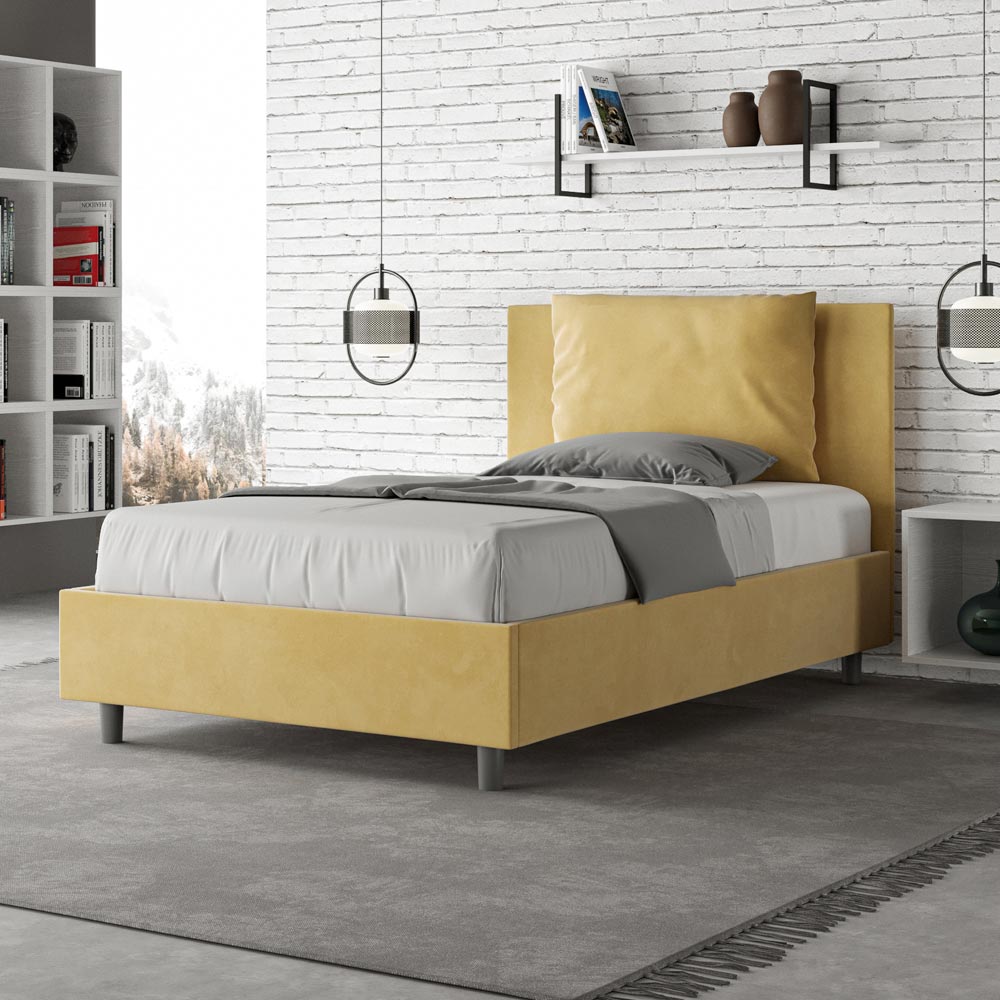 Queen-size bed 120x200 cm padded and covered in microfibre, Made in Italy