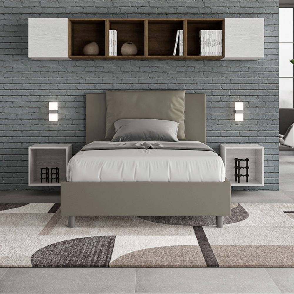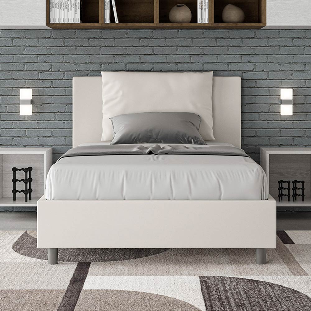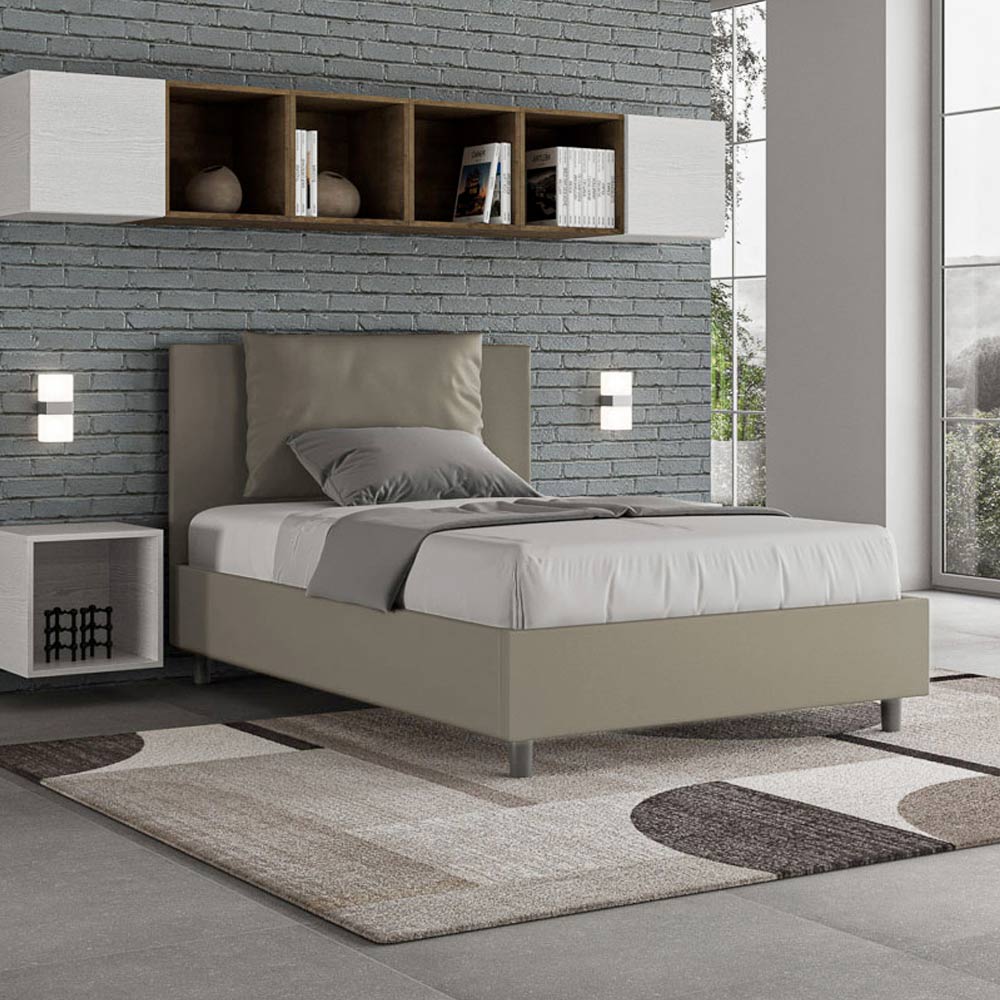 Queen-size bed, 120x200 cm, padded and upholstered in imitation leather, Made in Italy