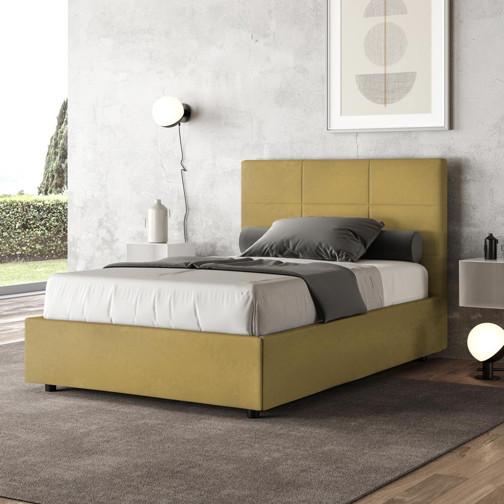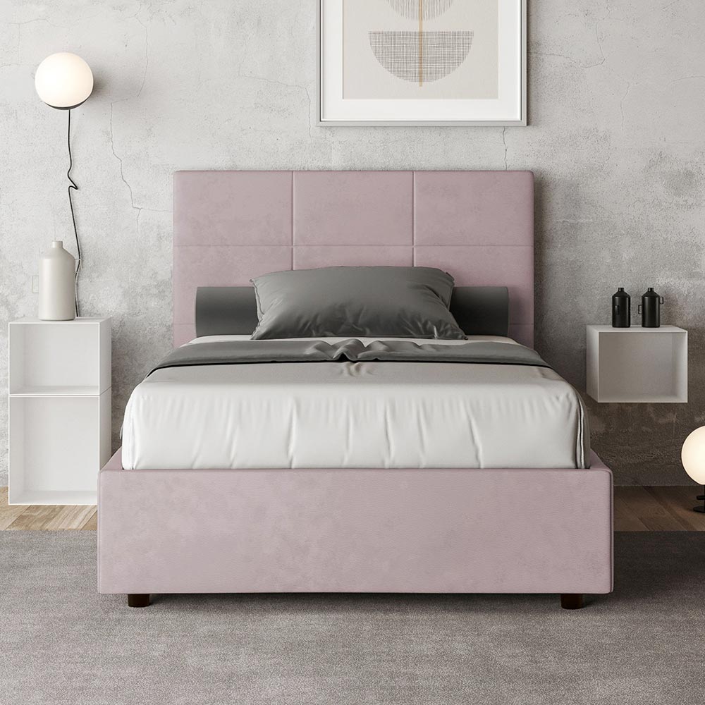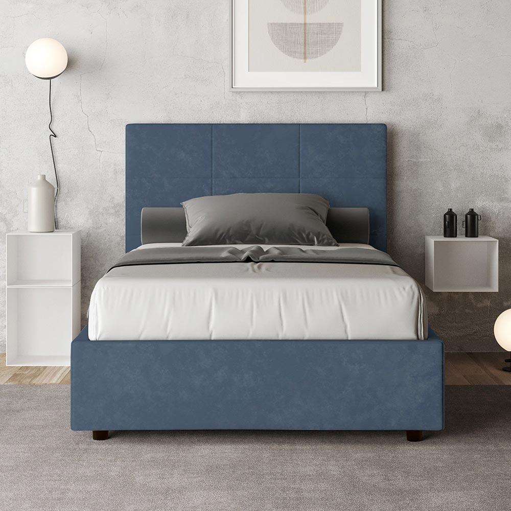 Queen-size bed 120x200 cm padded and covered in microfibre, Made in Italy