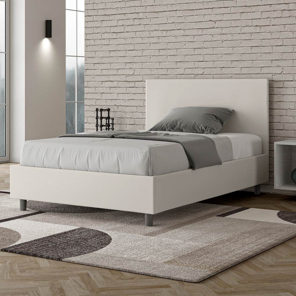 Queen-size bed, 120x200 cm, padded and upholstered in imitation leather, Made in Italy