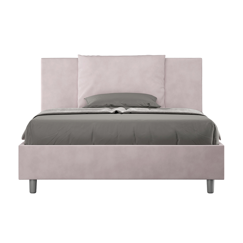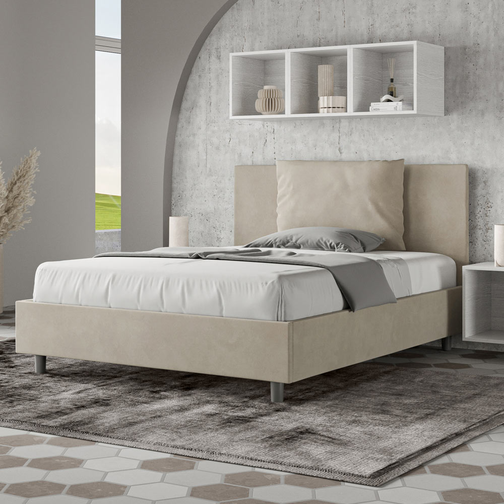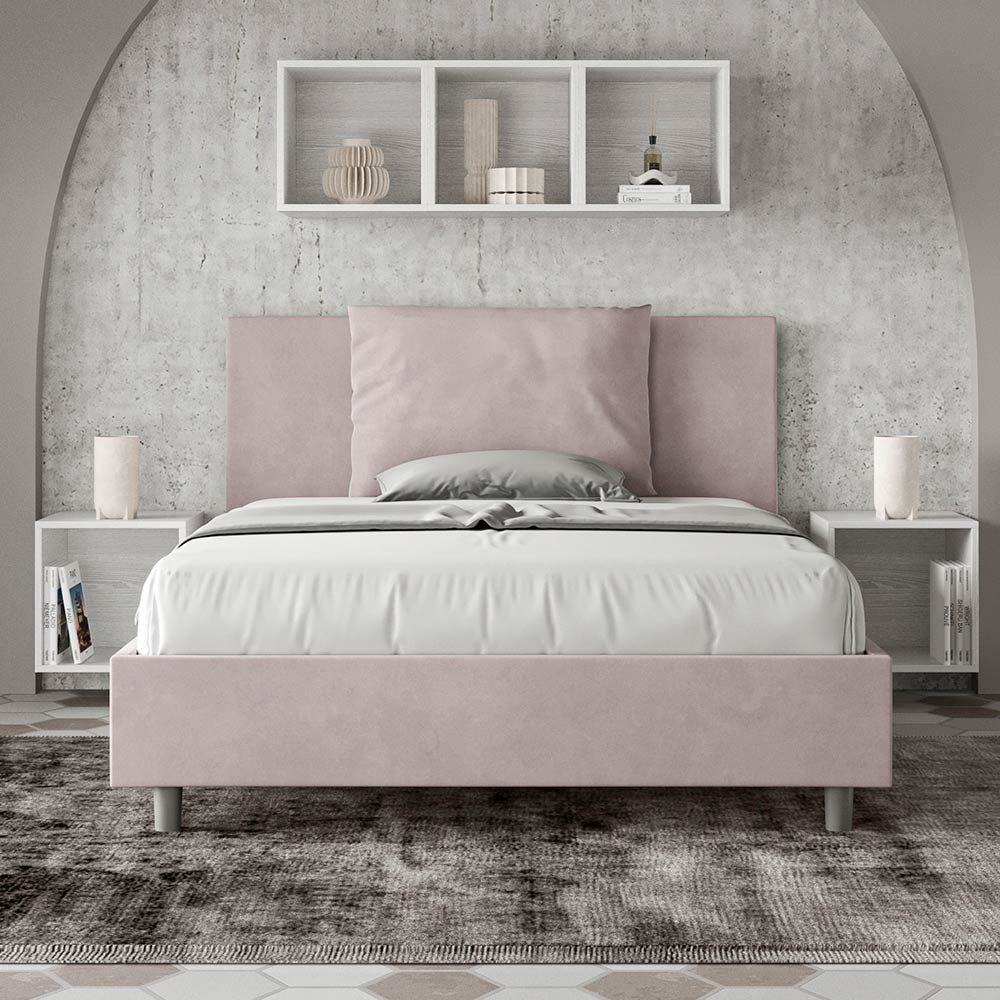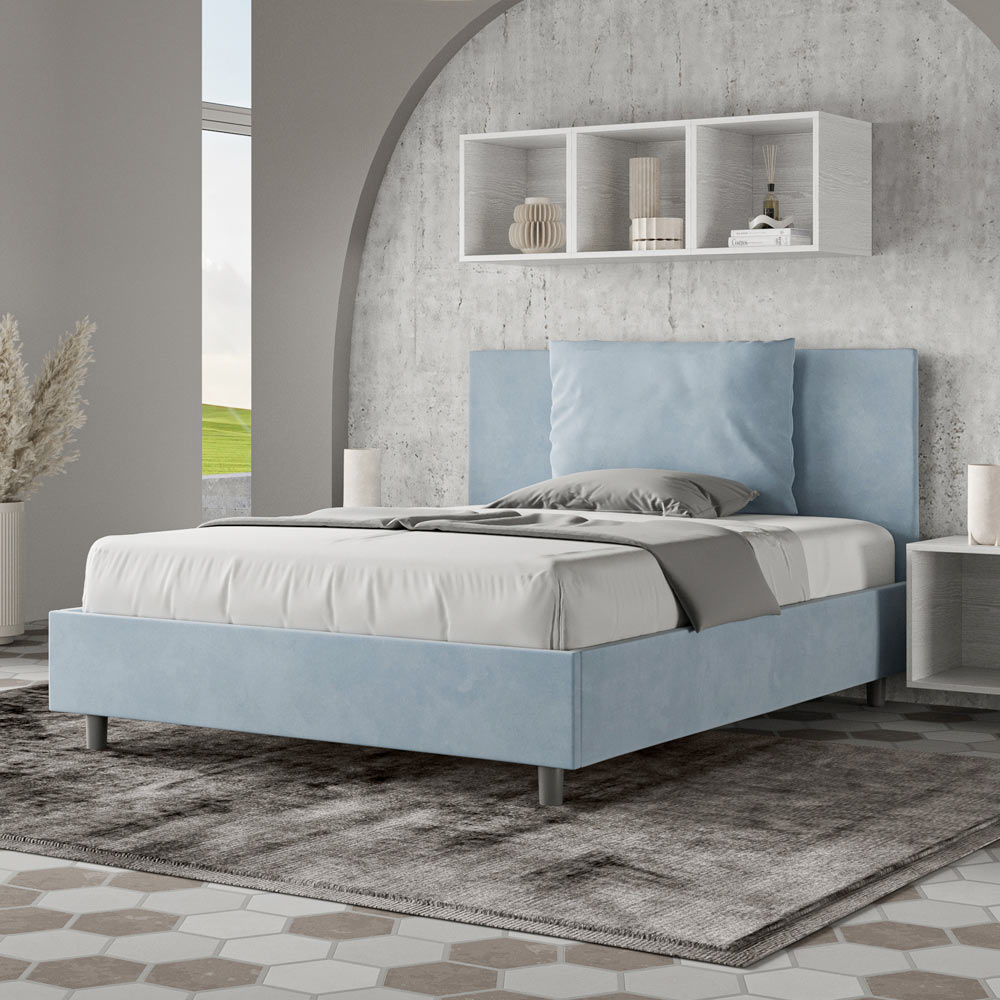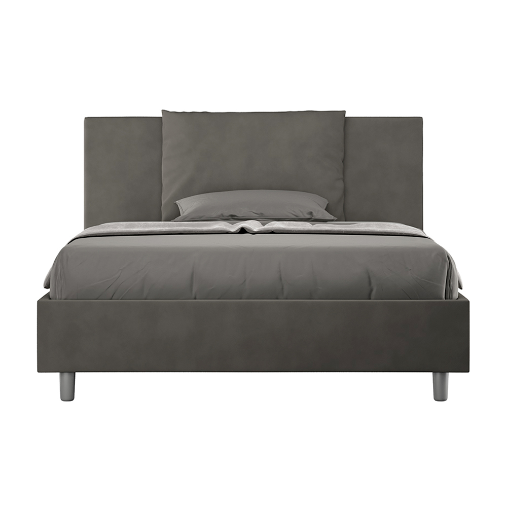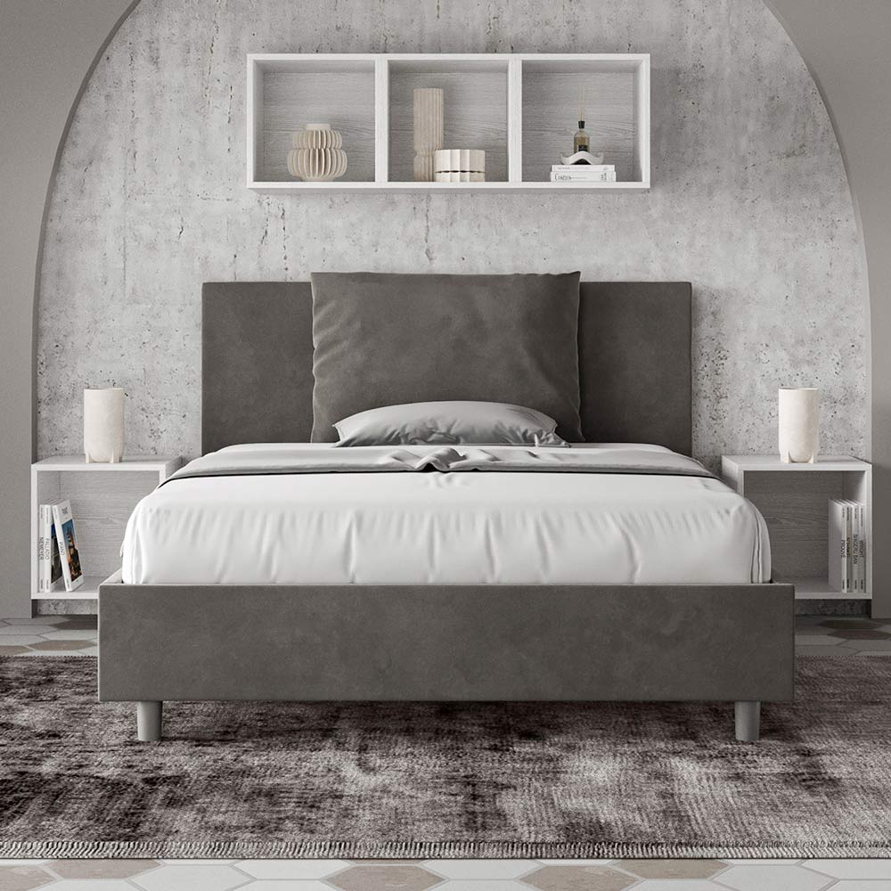 French bed 140x200 cm padded made of melamine panels and covered in microfibre , entirely Made in Italy. This French bed with an upholstered frame perfectly embodies the advantages of an upholstered bed: comfort, contemporary style, functionality, and efficient use of space . This bed, with its wide- cushioned headboard , offers a relaxing corner ideal for reading or watching TV, enhancing your bedroom. Elegant and stylish, this bed is upholstered in microfiber, making cleaning quick and easy: simply wipe it with a microfiber cloth to keep it sparkling.