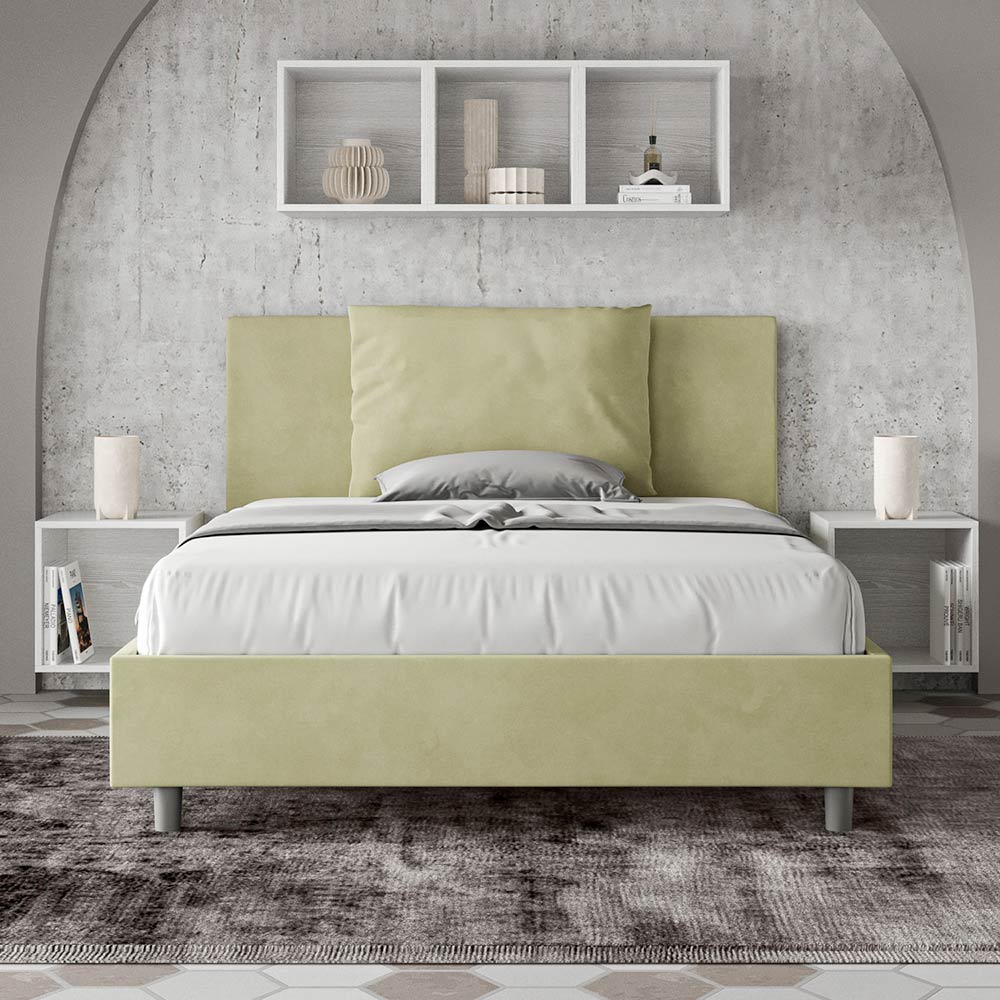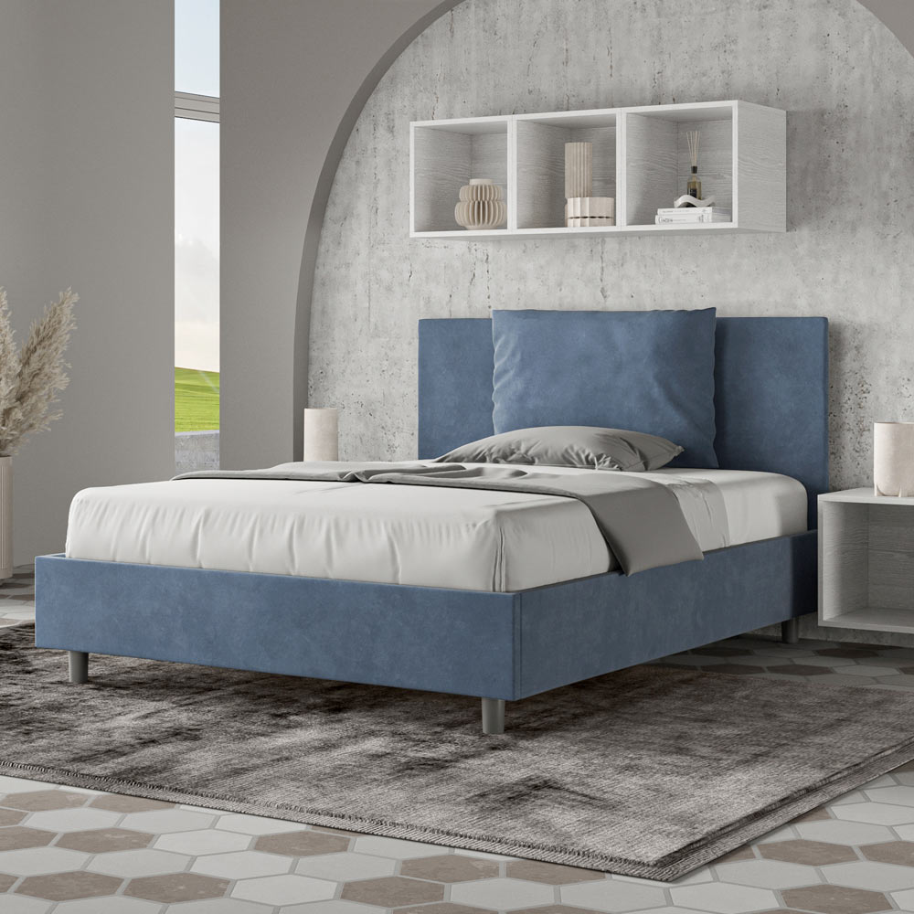 French bed 140x200 cm padded and covered in microfiber, Made in Italy