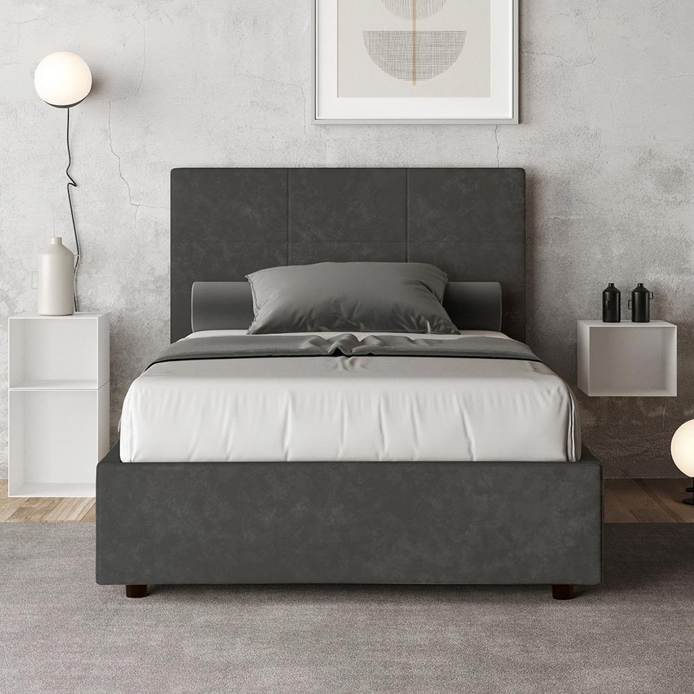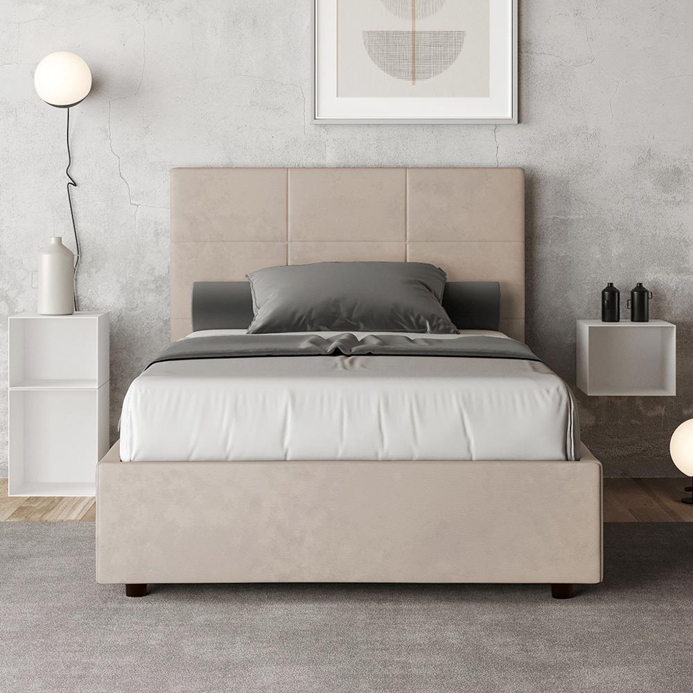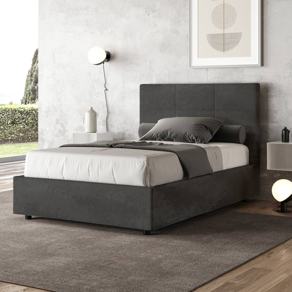 French bed 140x200 cm padded and covered in microfiber, Made in Italy