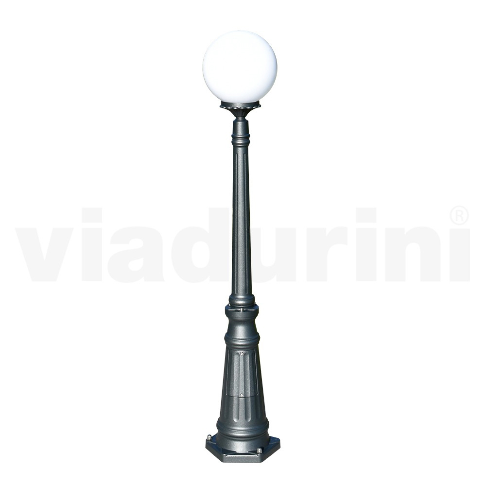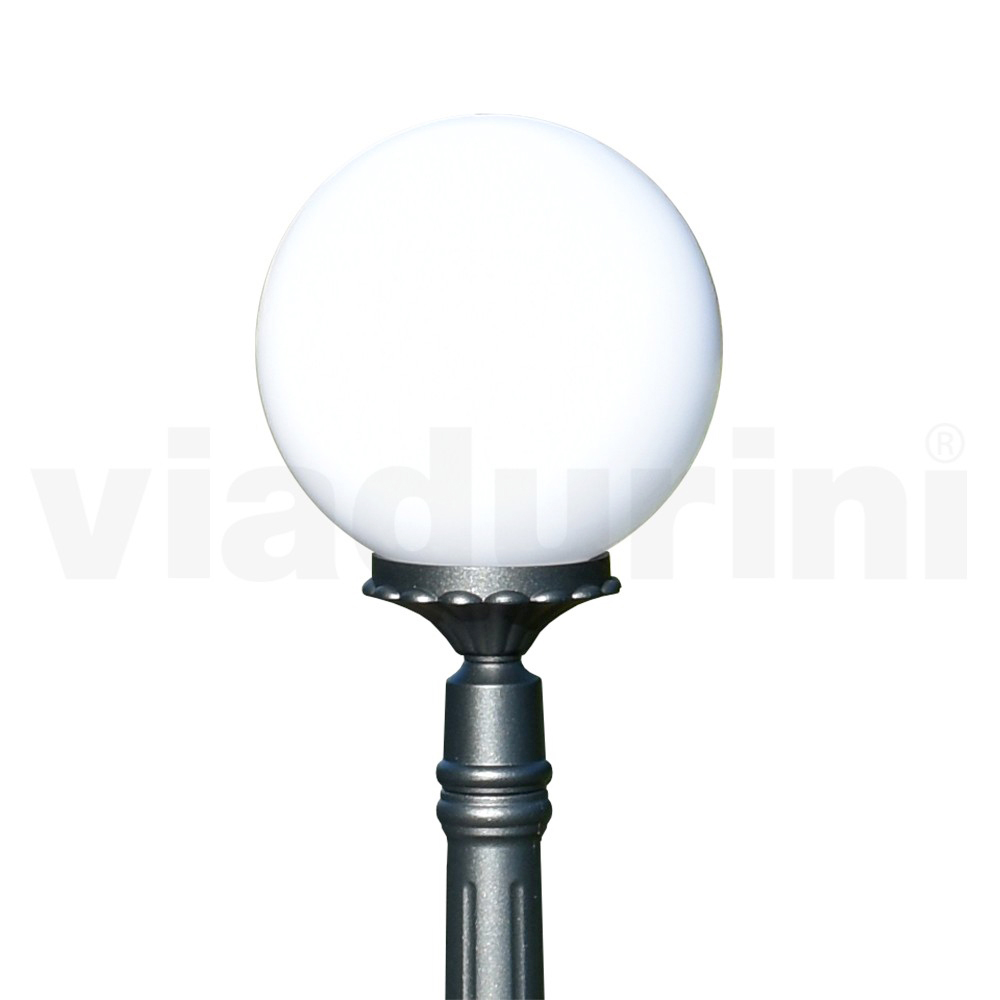 Garden lamp made with anthracite finish die-cast aluminum structure and opal acrylic sphere diffuser, entirely Made in Italy.