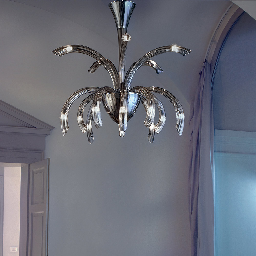 Artisan 15 lights chandelier in Venice glass and metal Made in Italy.