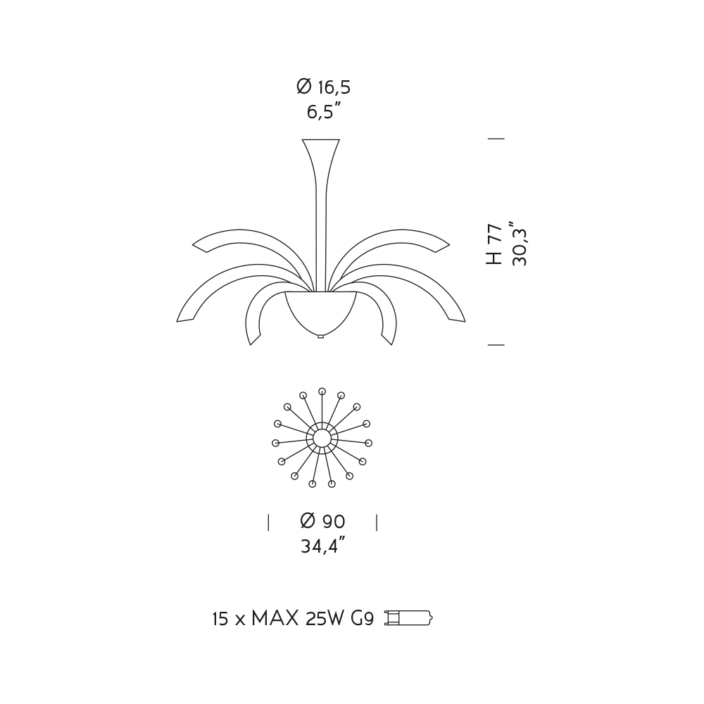 elegant curved arms expand outwards to bring light in various directions and illuminate the room through an