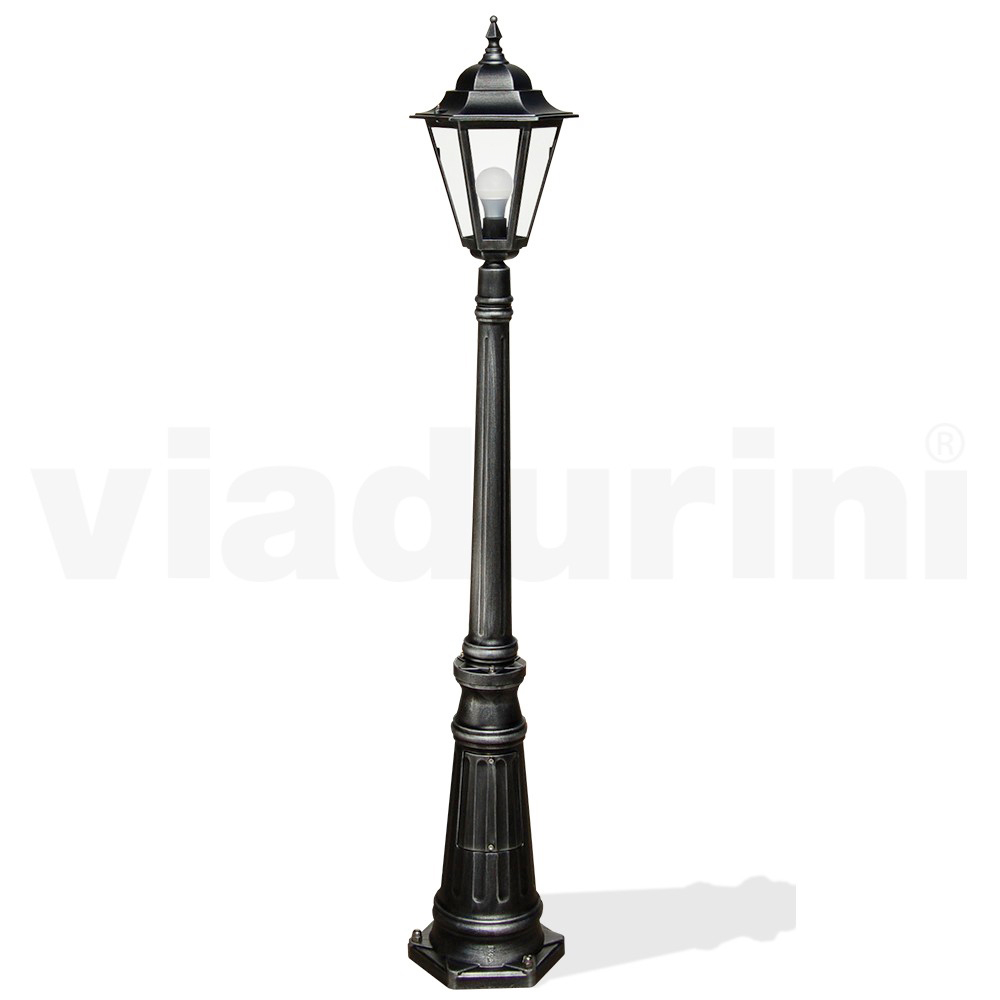 This elegant die-cast aluminum outdoor lamp combines sophistication and durability in a design that captures the essence of classic taste. The versatile and timeless finish makes this lamppost an ideal complement for any type of environment, from the most traditional to the modern one. The slender lines of the structure rise gracefully, culminating in a lantern that diffuses a warm and welcoming light, ideal for creating an evocative atmosphere in any outdoor space. With its elegant appearance and durable construction, this lamppost is the perfect choice for those who want to elegantly beautify and illuminate gardens, parks or driveways.
