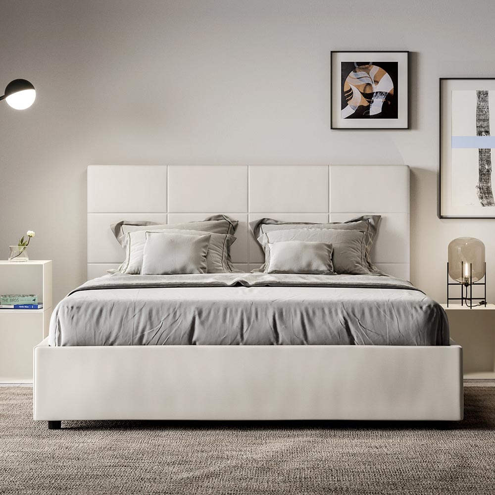 160x200 cm padded double bed covered in faux leather, Made in Italy