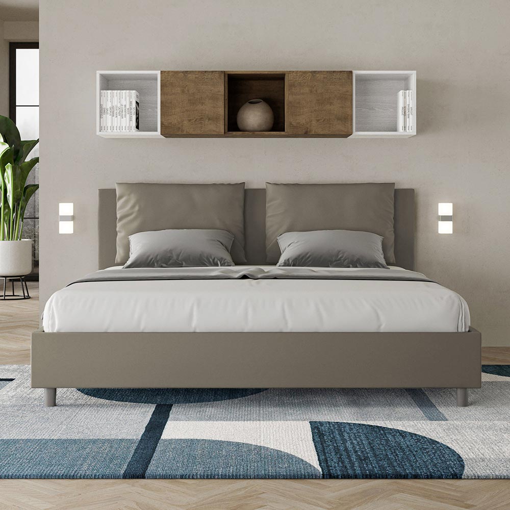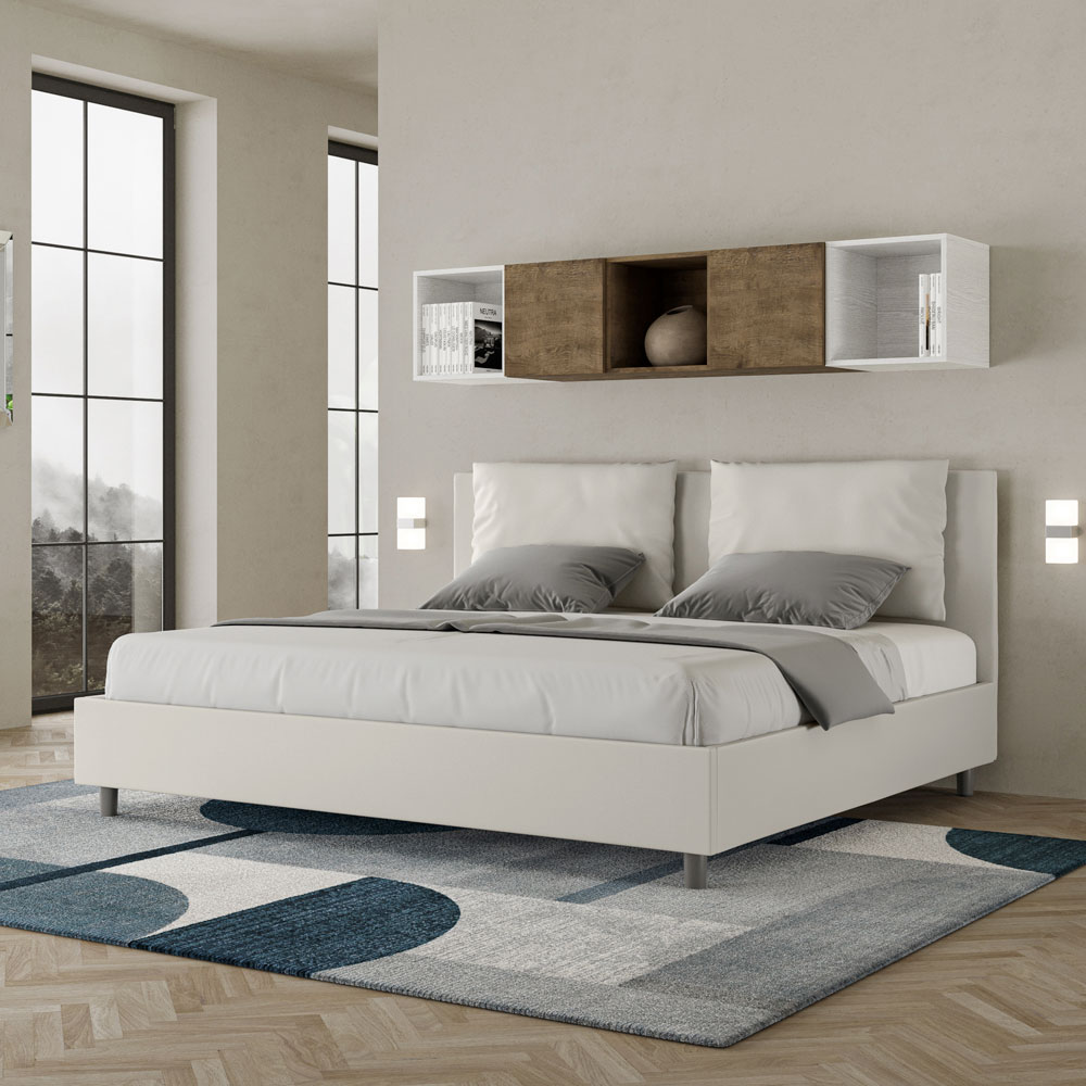King-size bed 180x200 cm padded and upholstered in faux leather, Made in Italy