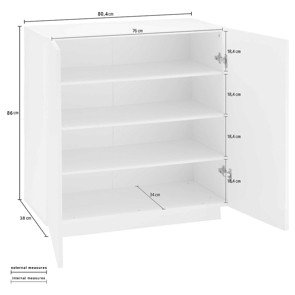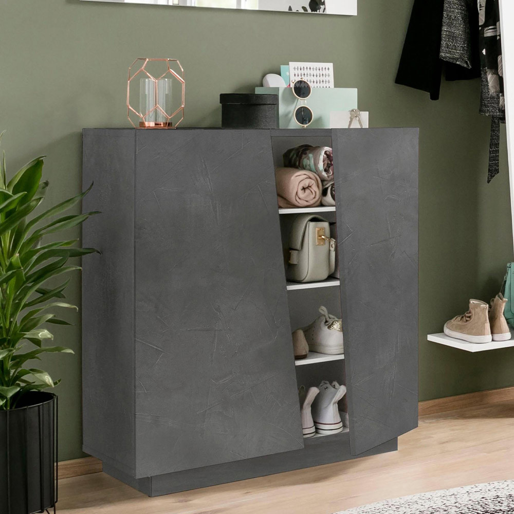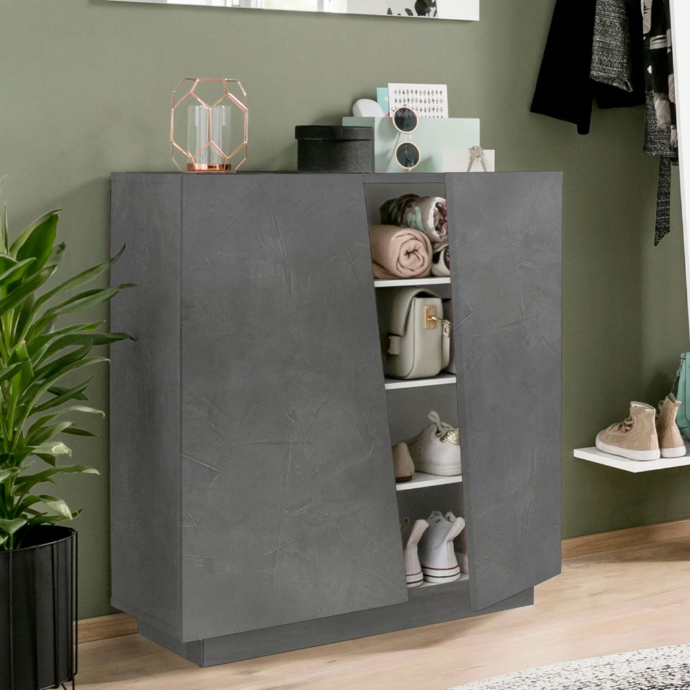 Shoe cabinet in sustainable melamine wood with 2 doors and 2 finishes, made in Italy.
