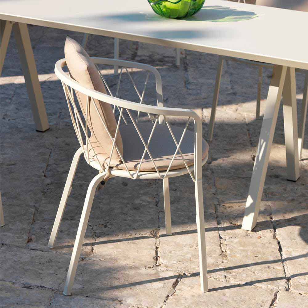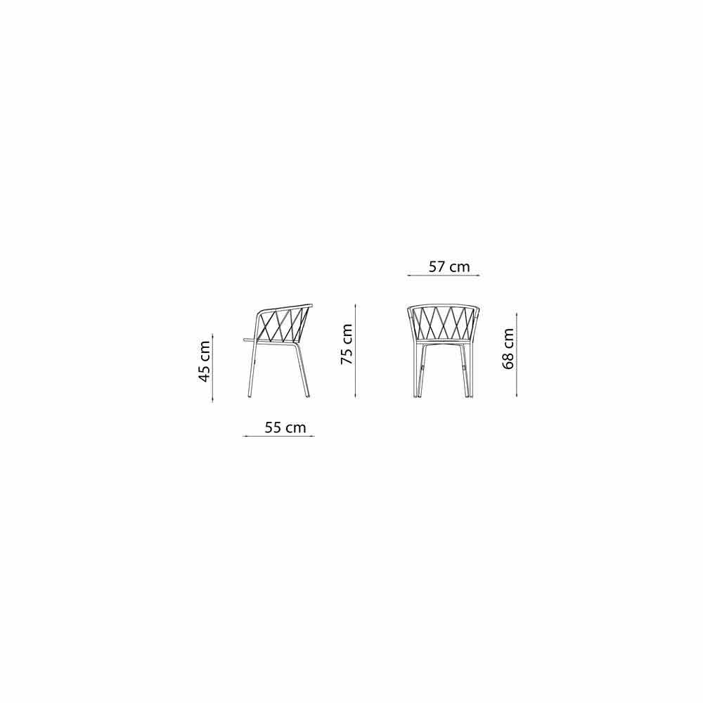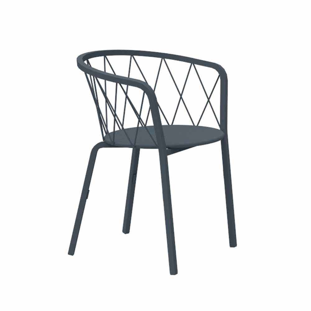 outdoor armchair is characterized by the particularity of the backrest and its geometric shapes that make it unique in its kind. Made entirely in Italy in powder-coated galvanized iron painted with thermosetting powders, each armchair is incredibly solid and resistant while maintaining a simple and functional design and high comfort. Ideal for private environments such as gardens and terraces but also in bars and restaurants where they can give personality and optimize spaces at the same time thanks to the possibility of being stacked when and if necessary.