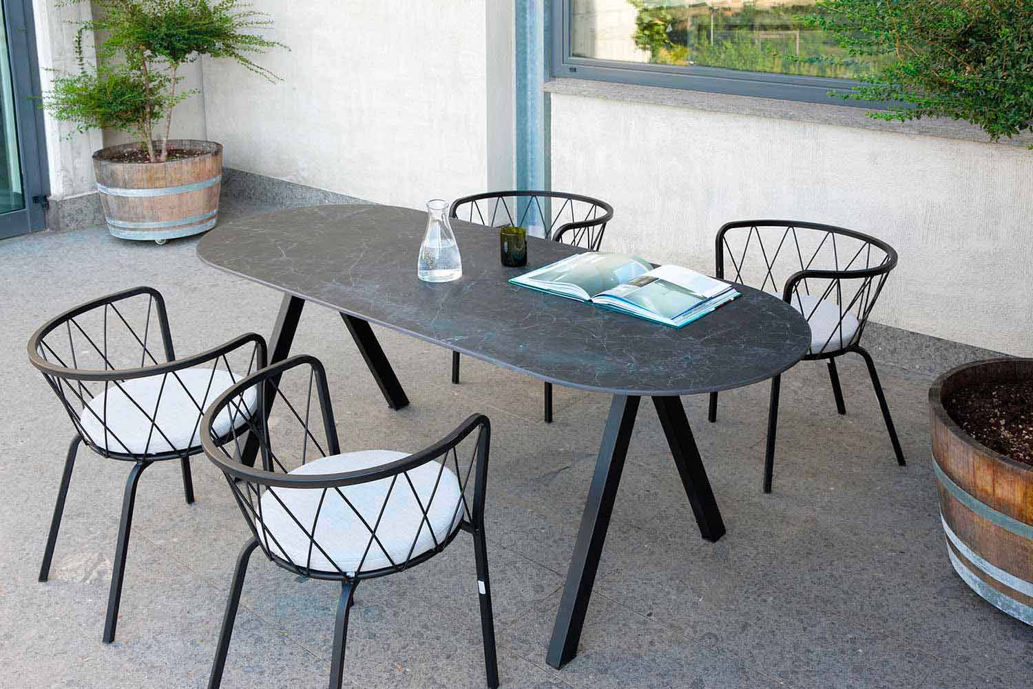 This line of outdoor furniture is characterized by a contemporary design with elements with simple and clean lines that blend with the interweaving of the shapes of the backrest to create innovative and classy products. Each element is made in Italy with innovative techniques and quality materials that contribute to giving strength and solidity and therefore a fantastic durability over time without losing the vividness of the colors or the wonderful finish of the surface. By combining the different products of the collection it is possible to create functional and dynamic outdoor living rooms that integrate perfectly into the most varied environments.