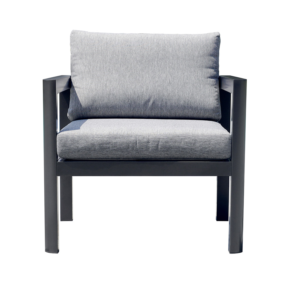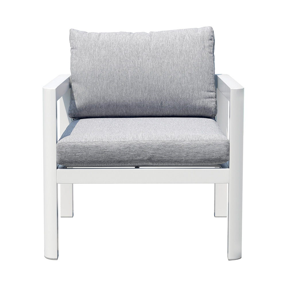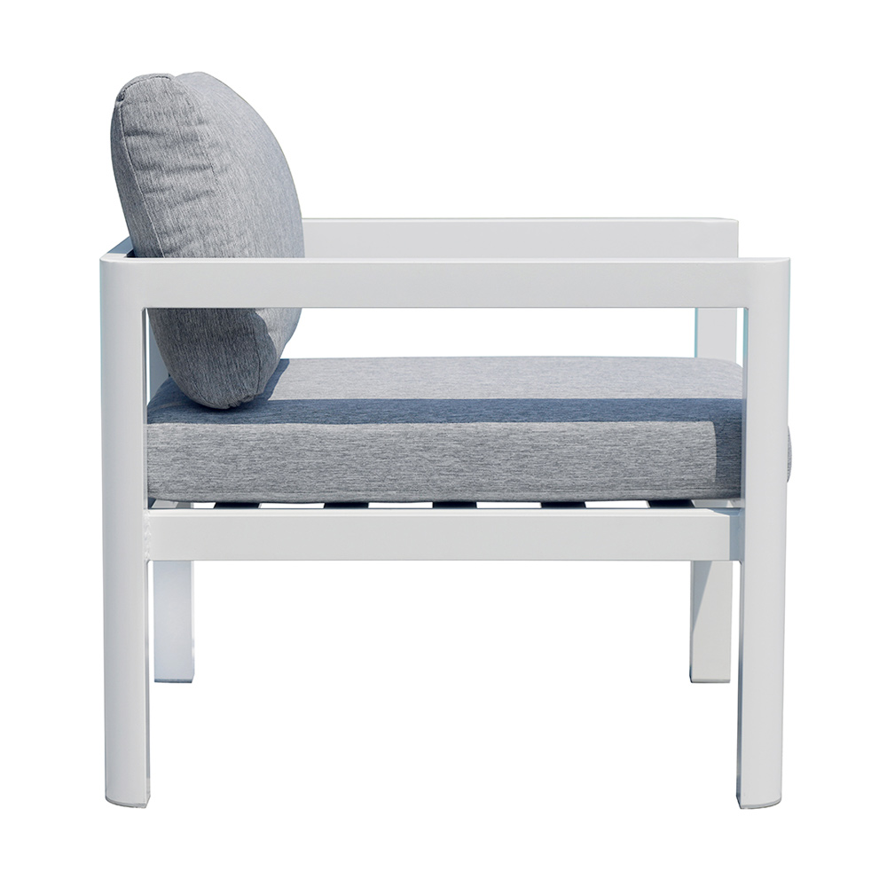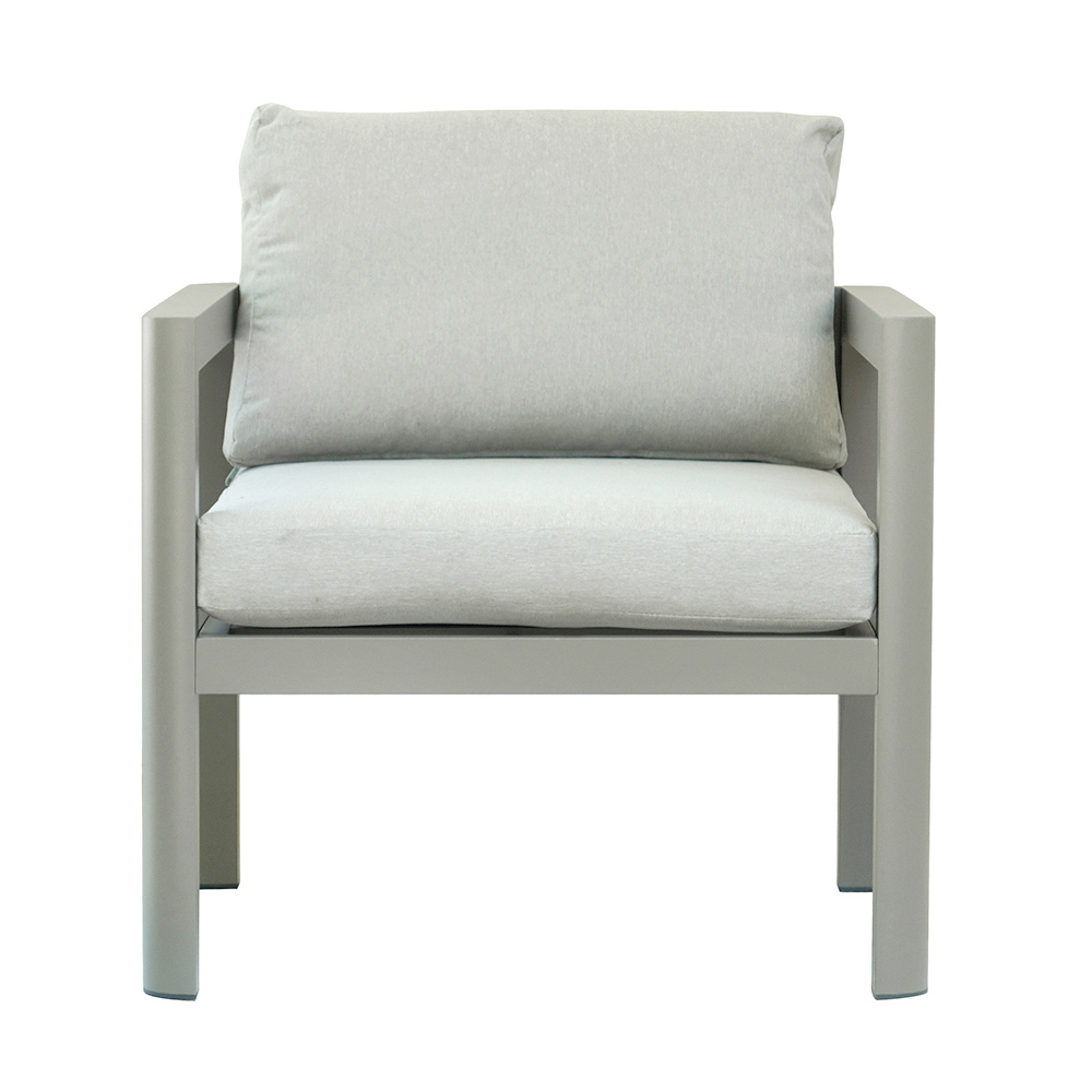 This elegant armchair is designed to blend modern style with timeless comfort . With its sturdy aluminum frame, it fits perfectly into any outdoor environment, adding a touch of contemporary elegance .