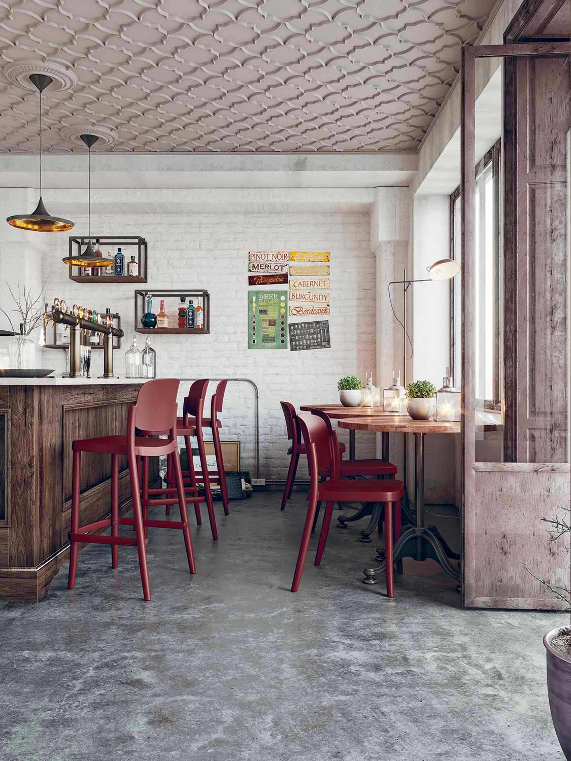The Calista high outdoor stool is characterized by a minimal and versatile design that combines in itself the tradition of form and the modernity of polypropylene and colors, adapting perfectly to any type of furniture.