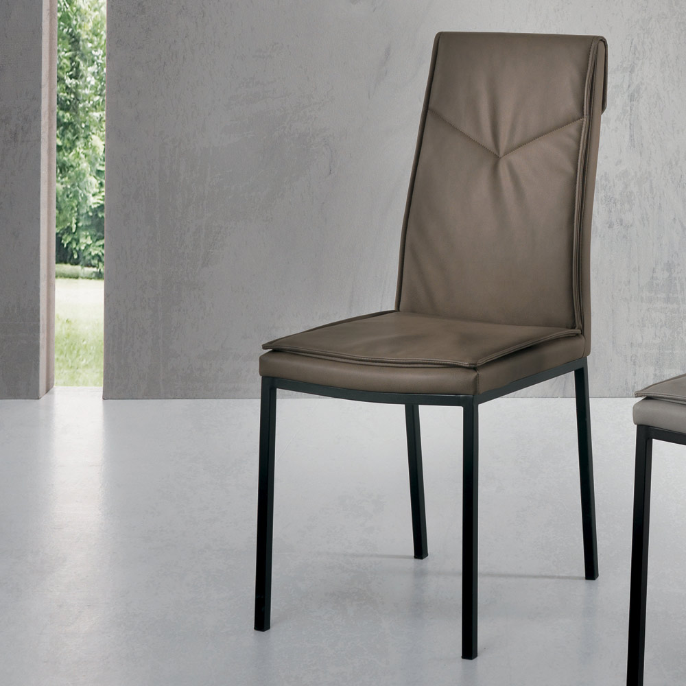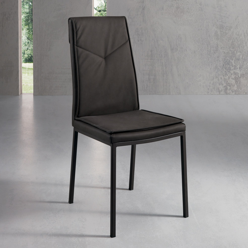 Dining room chair in textured eco-leather and metal legs 2 pieces.