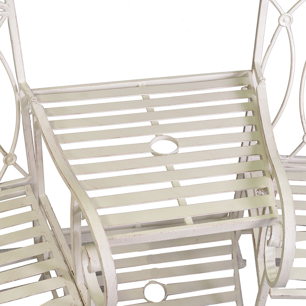 The central table, perfect for resting a book or a cup of coffee, also includes a practical umbrella stand , allowing you to enjoy your outdoor space in any weather, providing both shade and shelter. The sturdy construction and weather-resistant finish ensure durability and easy maintenance, making this set a long-term investment in your outdoor comfort.
