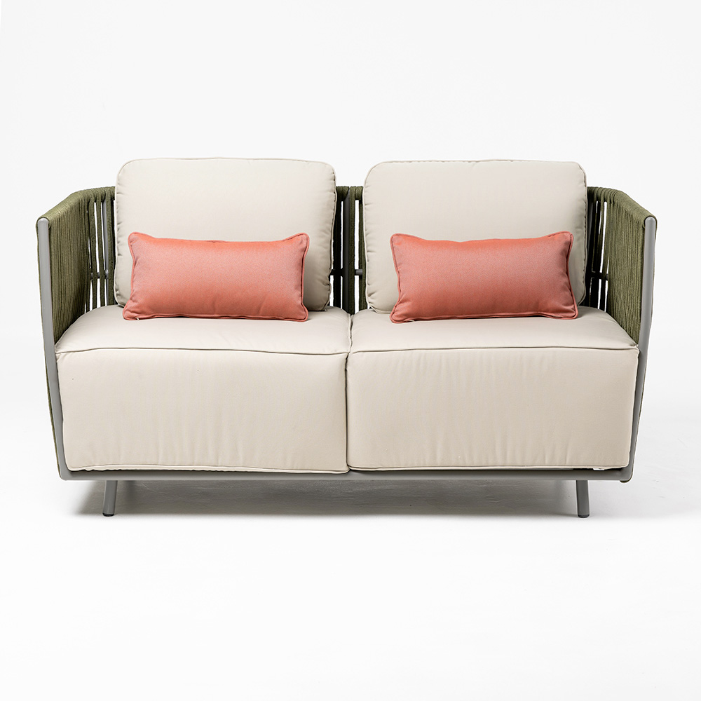 This sofa with large seats is easy to handle and sturdy but at the same time maintains a clean and essential design. Its modern style gives it a strong character making it perfect for furnishing outdoor spaces both in private and contract environments.