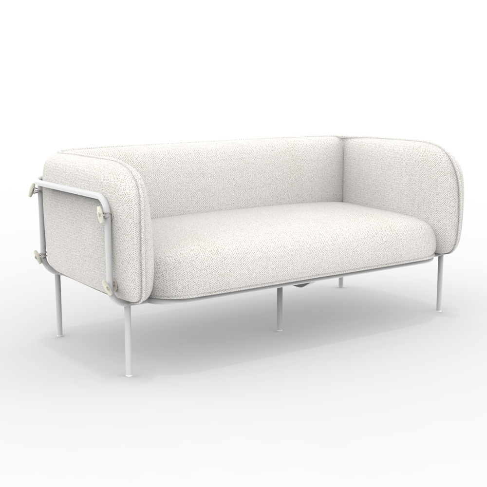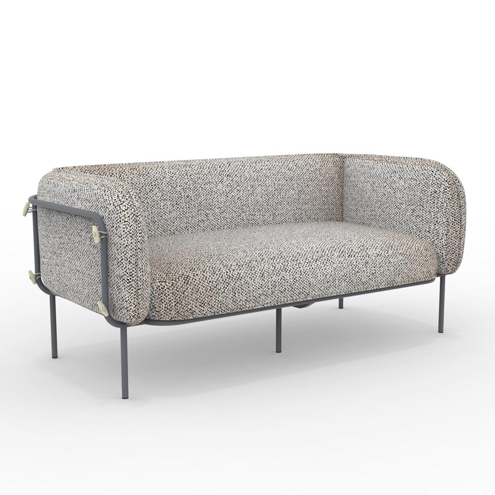 2-seater outdoor sofa made with powder-coated galvanized iron structure and fabric seat , entirely Made in Italy.