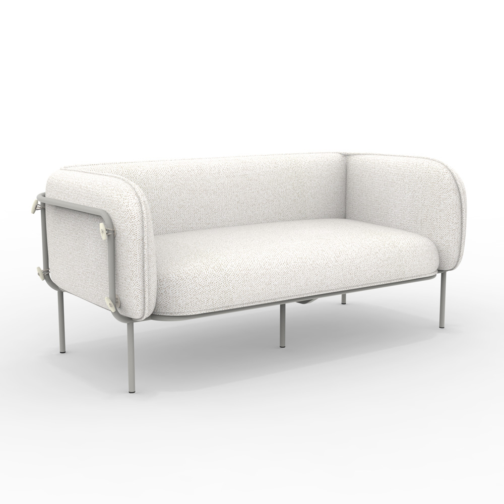 Discover the perfect combination of design and relaxation with this clean-lined garden sofa. With its powder-coated galvanized iron frame, this seat adds a touch of minimalist elegance to any outdoor space . The waterproof and UV-resistant fabric envelops soft padding that invites moments of authentic relaxation. The available fabric finishes blend harmoniously with the surrounding environment, reflecting the sunlight and helping to create an atmosphere of serenity and style. Placed next to a sparkling pool or in a green corner of the garden, this sofa is a promise of long-lasting comfort and beauty that defies time.