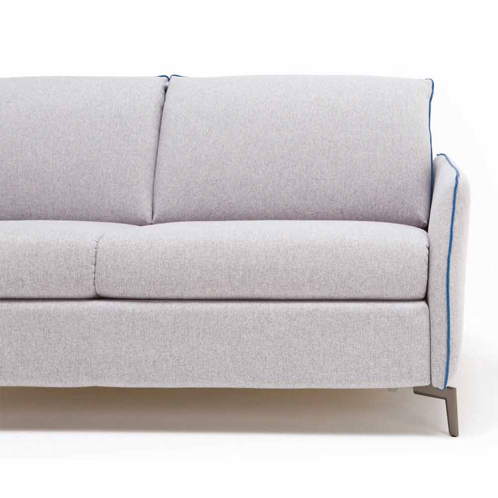 Erica is a design sofa that can fit into any environment thanks to its versatility; surrounded by an elegant visible border that traces the line of the sofa and makes it current and modern. It is possible to have it in different finishes such as eco-leather and stain-resistant fabric.