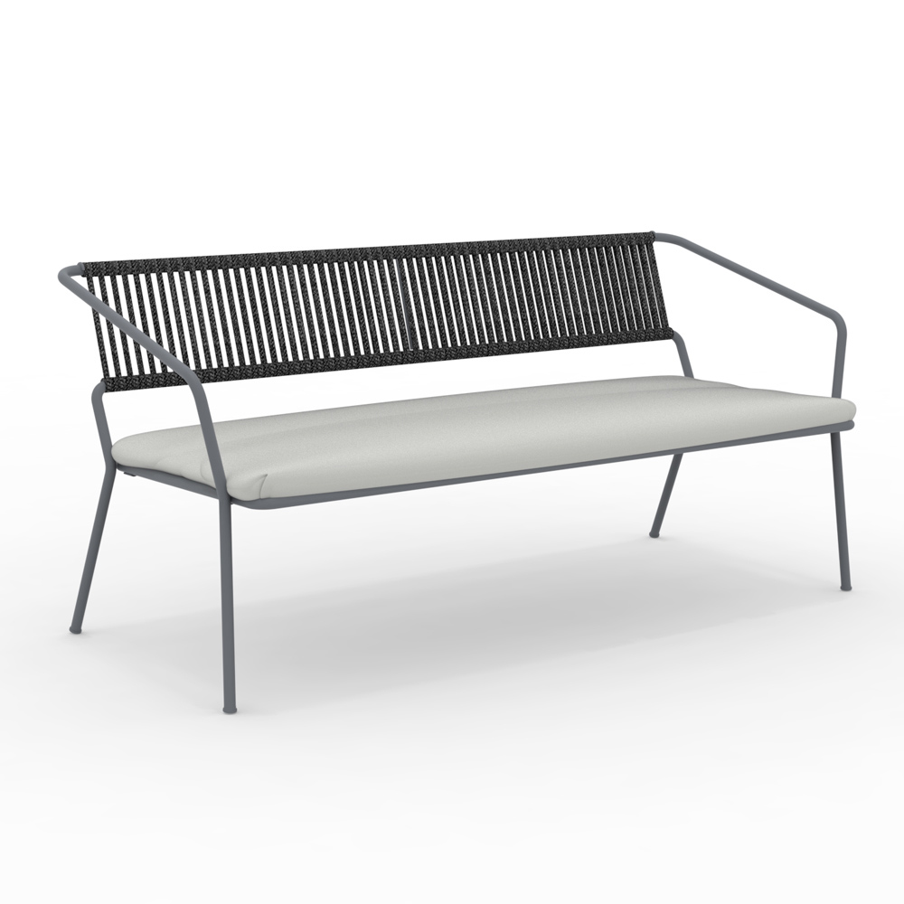 2 seater garden sofa with powder coated galvanized iron frame and rope and fabric seat Made in Italy