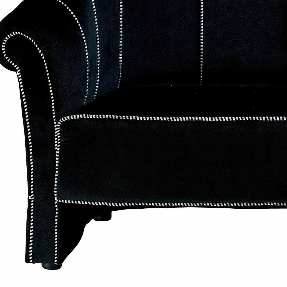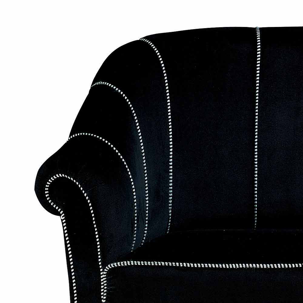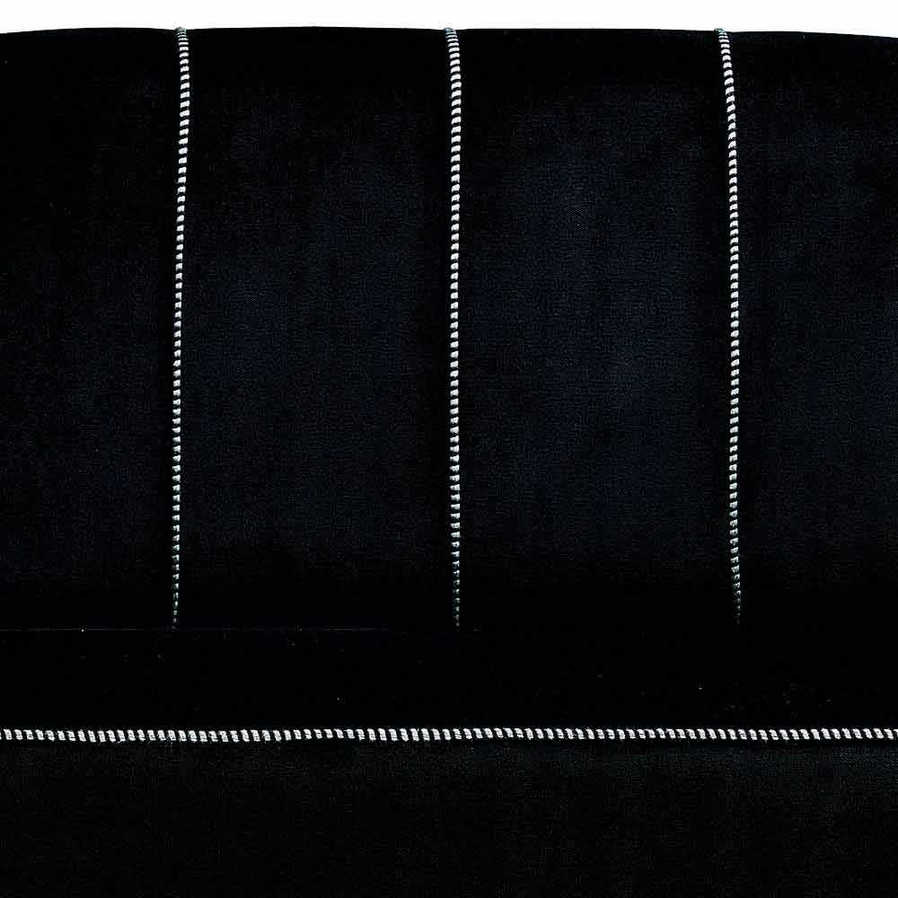 2 seater sofa with internal wooden structure covered in polyurethane foam and polyester fiber lining, external covering in black velvet with black and white trimmings ( not removable ). Made through a 100% Made in Italy production , this sofa has a particularly simple and versatile shape that easily adapts to any modern living area thanks to a sober design and essential shapes . To enrich the aesthetics are the contrasting seams that underline the basic features of the sofa, giving a sense of refinement and innovation for a cutting-edge result. Ideal for those who love an elegant furnishing style, this furnishing solution also features a velvet covering, a material that maximizes its comfort even to the touch. The materials chosen and used for the realization of this complement also allow to obtain a particularly welcoming seat, therefore ideal for spending wonderful moments dedicated to relaxation in your living room.
