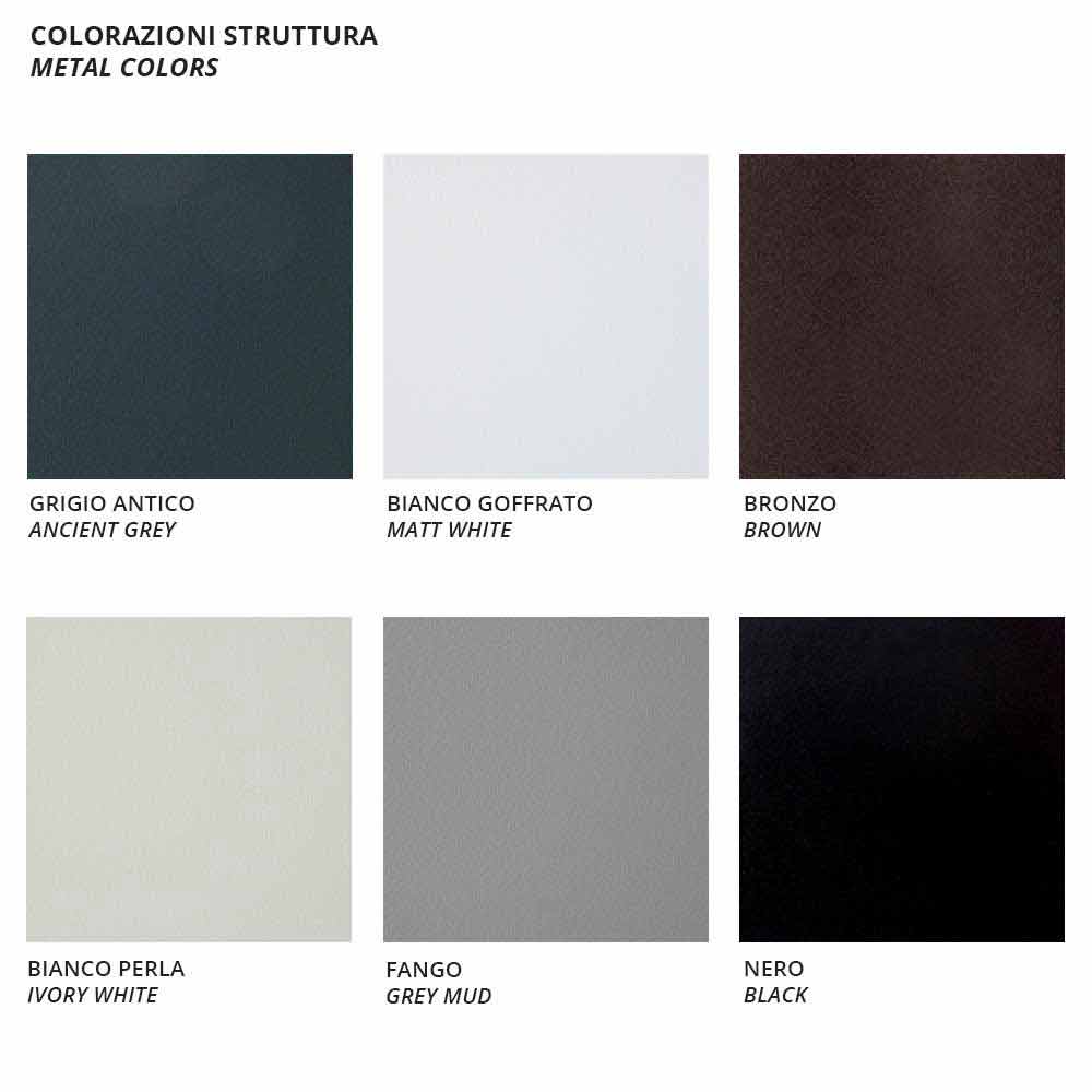 powder-coated galvanized iron painted with thermosetting powders ideal for the creation of outdoor products that maintain their aesthetic characteristics intact in any climatic situation. The roof, seat and backrest are instead made of