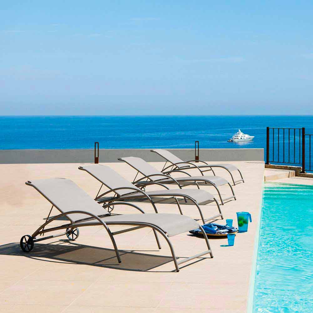 Outdoor chaise longue characterized by curved lines that intersect to recreate a personal oasis of relaxation and pleasure inside your garden. Thanks to its modern and elegant design, the product is a perfect mix of functionality and refinement, also being easy to move thanks to the practical