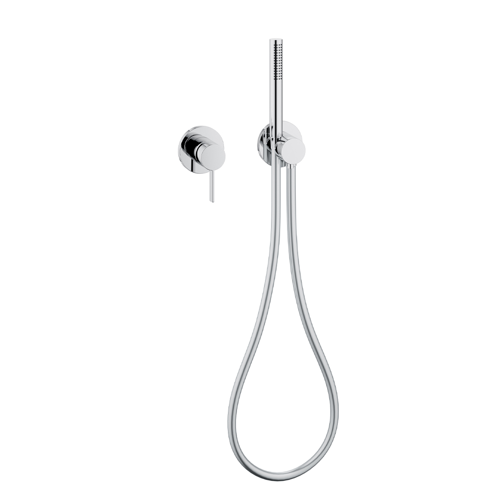 • Two-way concealed diverter with flexible hose connection and wall-mounted shower support