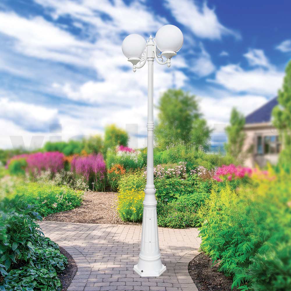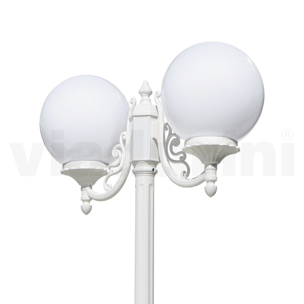 Garden lamp made with a die-cast aluminum structure and opal acrylic sphere diffuser, entirely Made in Italy.