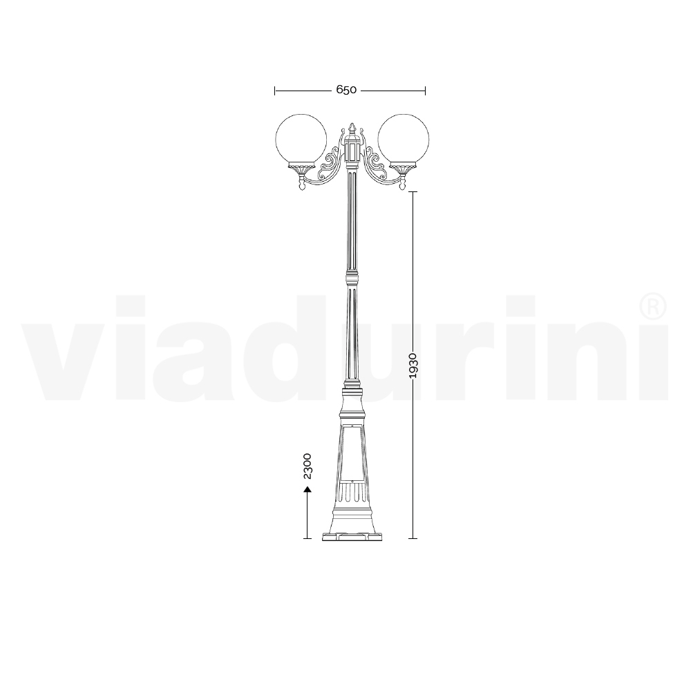 Outdoor street lamp in die-cast aluminum with 2 acrylic diffusers