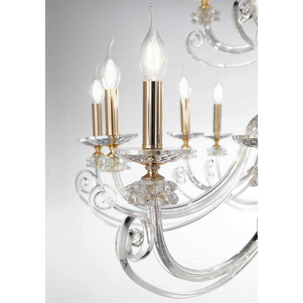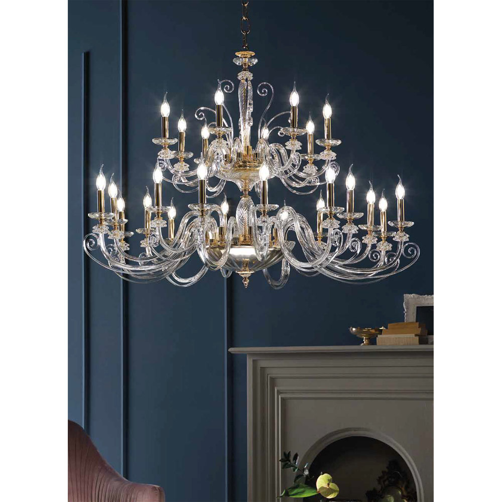Handcrafted 24 lights chandelier in blown glass and optical crystal, luxury made in Italy.