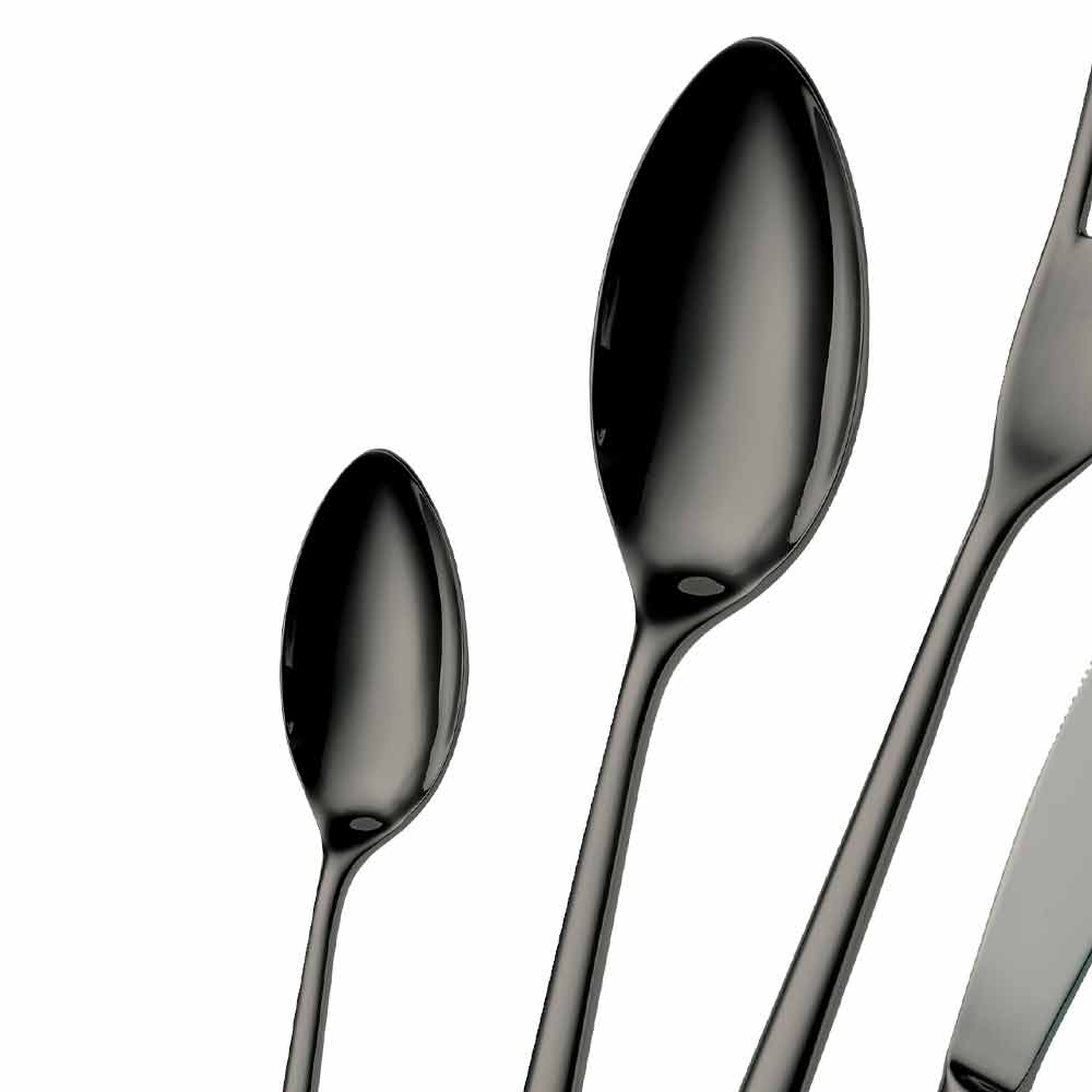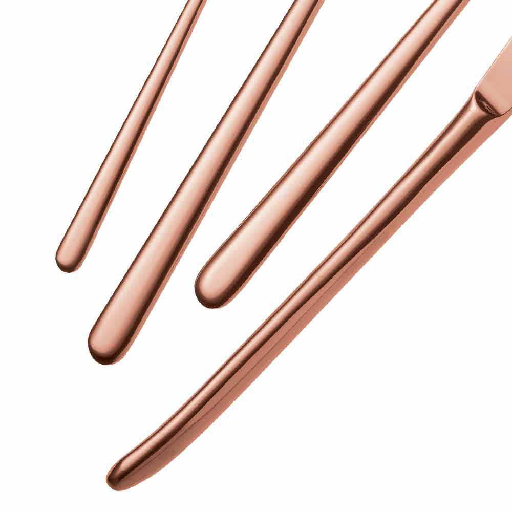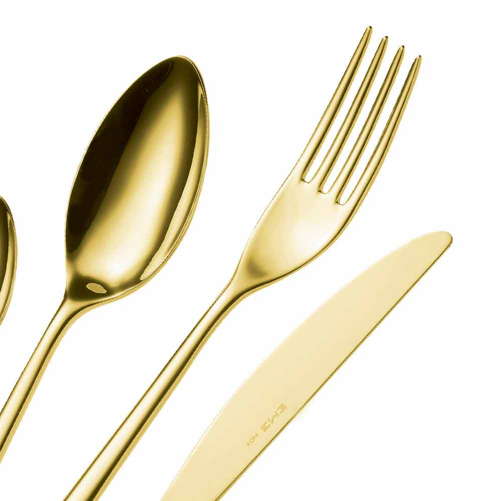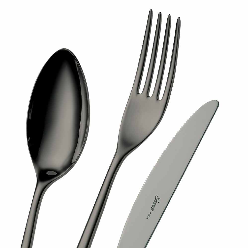 PVD is the acronym for Physical Vapor Deposition, which is a technology used to color steel in special vacuum chambers where very thin metal films are steam sprayed, which condense on the cutlery. This treatment, with a range of wonderful shades of color, in addition to embellishing the cutlery, makes them more resistant to wear and scratches and is a perfectly sustainable coating suitable for food use.