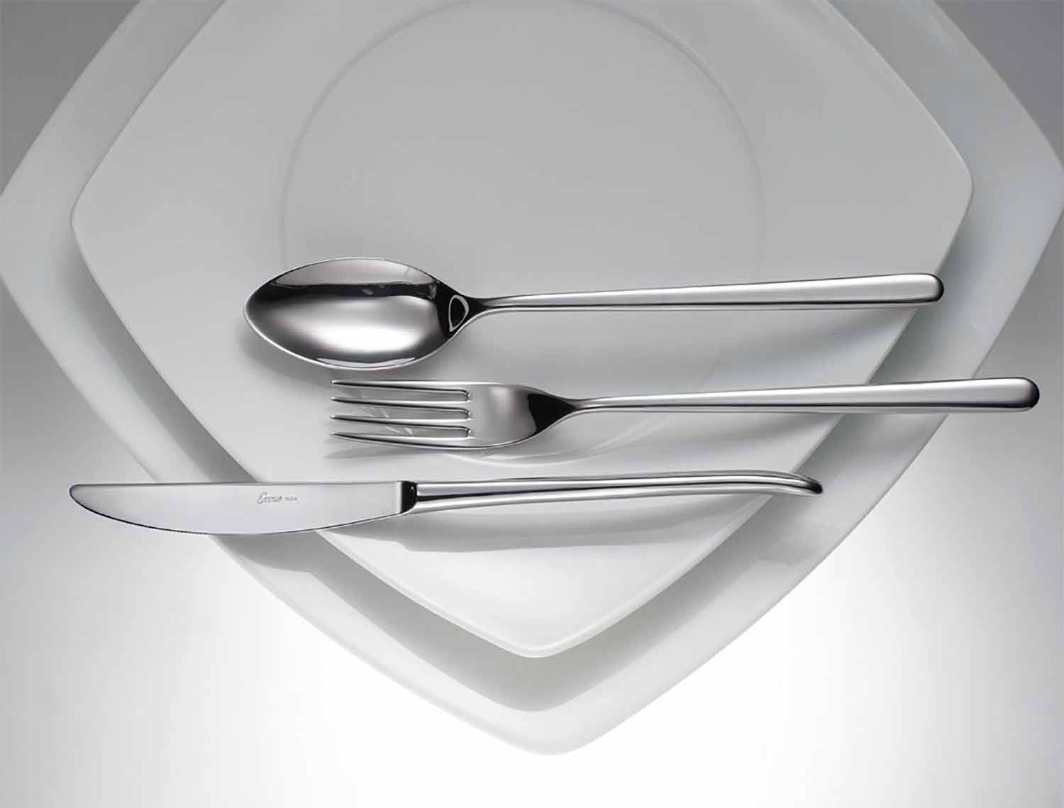 24 Cutlery in polished or sandblasted stainless steel 5 finishes, sleek and elegant design made in Italy.