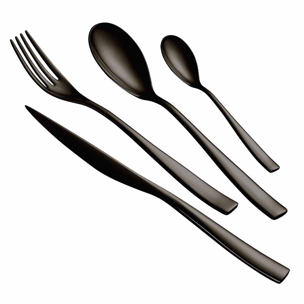 24 stainless steel cutlery with 6 available finishes, modern luxury design made in Italy.