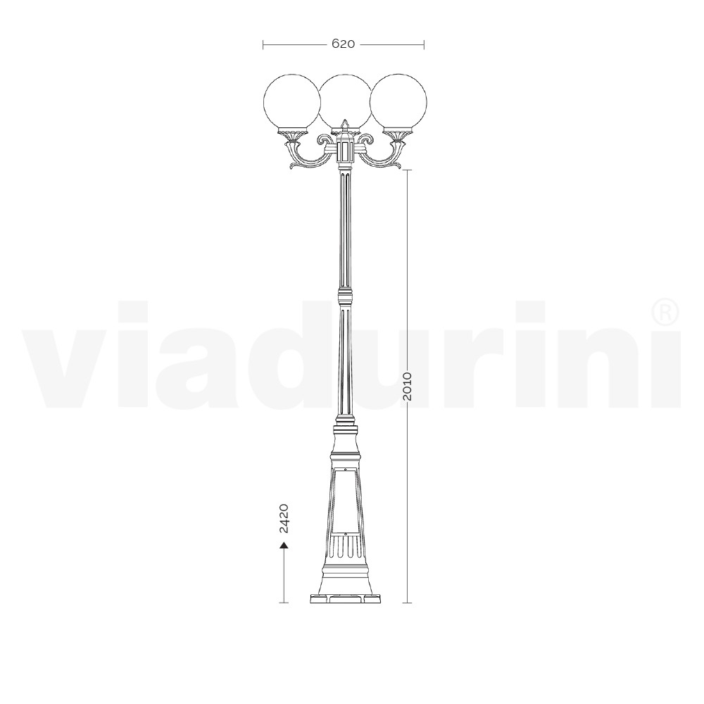 Outdoor street lamp in die-cast aluminum with 3 acrylic diffusers