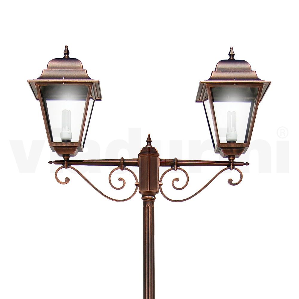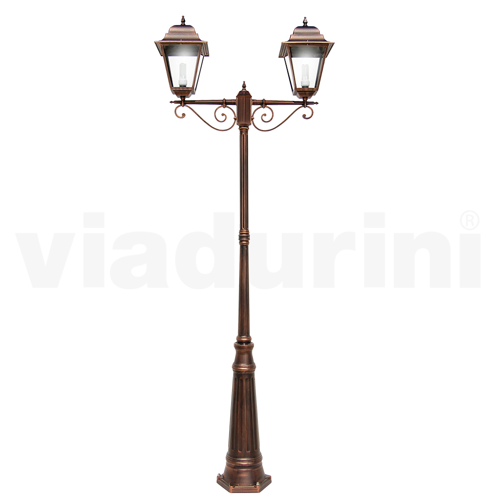 Incorporate a touch of classic grace into your outdoor space with this street lamp. Made of robust die-cast aluminium , it stands out for its exceptional durability and its ability to withstand the elements with elegance. The finish enhances any garden or driveway, spreading a visual warmth that is as welcoming as it is charming. The 2 upper domes and glass come together to create optimal light distribution, while the crafted details give the piece a distinctive character and antique charm. Whether positioned along a romantic path in the garden or as a welcome point at the entrance, this lamppost is not simply a functional element but a true symbol of style and quality.