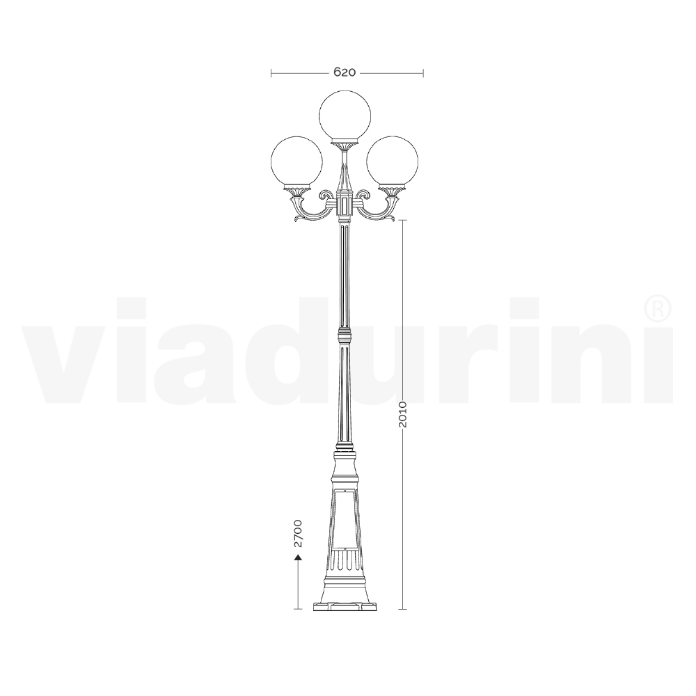 Bring a breath of classic elegance to your outdoor space with this cast aluminum outdoor street lamp. The refined superior quality aluminum construction promises unparalleled resistance to weather conditions, ensuring you have a long-lasting and timeless lighting solution. This street lamp diffuses a balanced and homogeneous light, perfect for driveways, gardens or patios. The finish blends harmoniously with the natural landscape, adding a touch of nobility and tradition to the context in which it is placed. This lamppost is not simply a functional object, but a true symbol of style and refinement , capable of transforming any exterior into an enchanted and welcoming place.