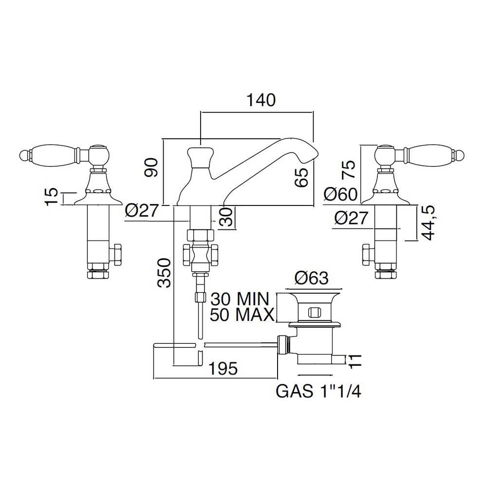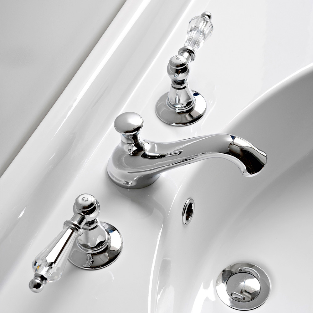 3-holeĀ basin faucetĀ with drain classic style in handcrafted brass withĀ levers,Ā made in Italy.