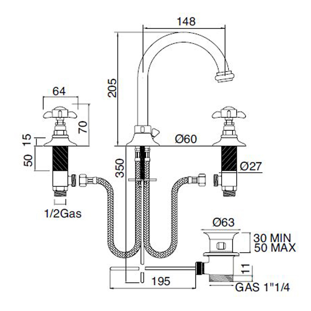 3-hole washbasin faucet with high spout and drainĀ ĆØ entirely