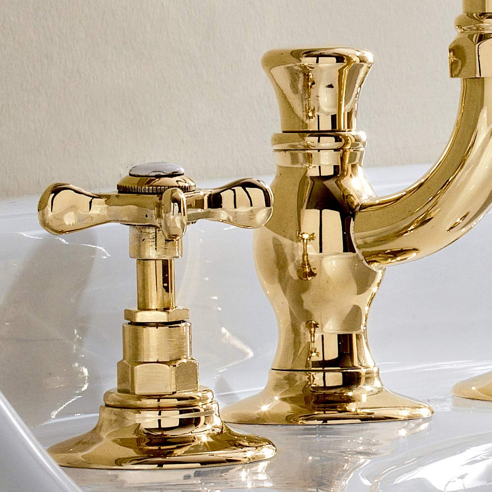 3-hole basin mixer with high spout in Classic Handmade Brass - Fioretta