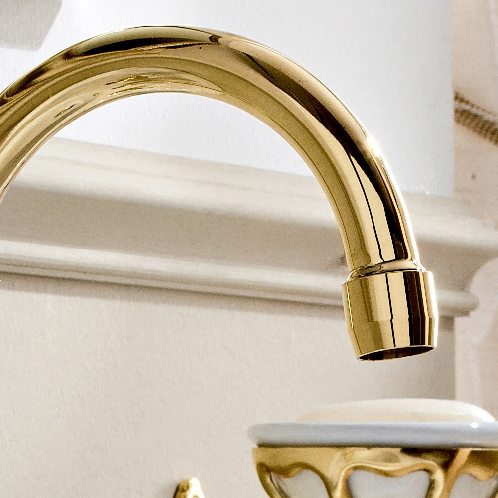 This refined basin faucet for washbasin a 3-hole with high spout and drain è entirely handcrafted by expert artisans in the field inheavy brass, cast in molds that respect the craft systems of the past and protected with a thick layer of finish available in various colors.