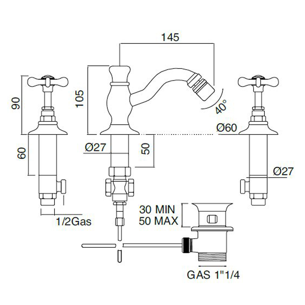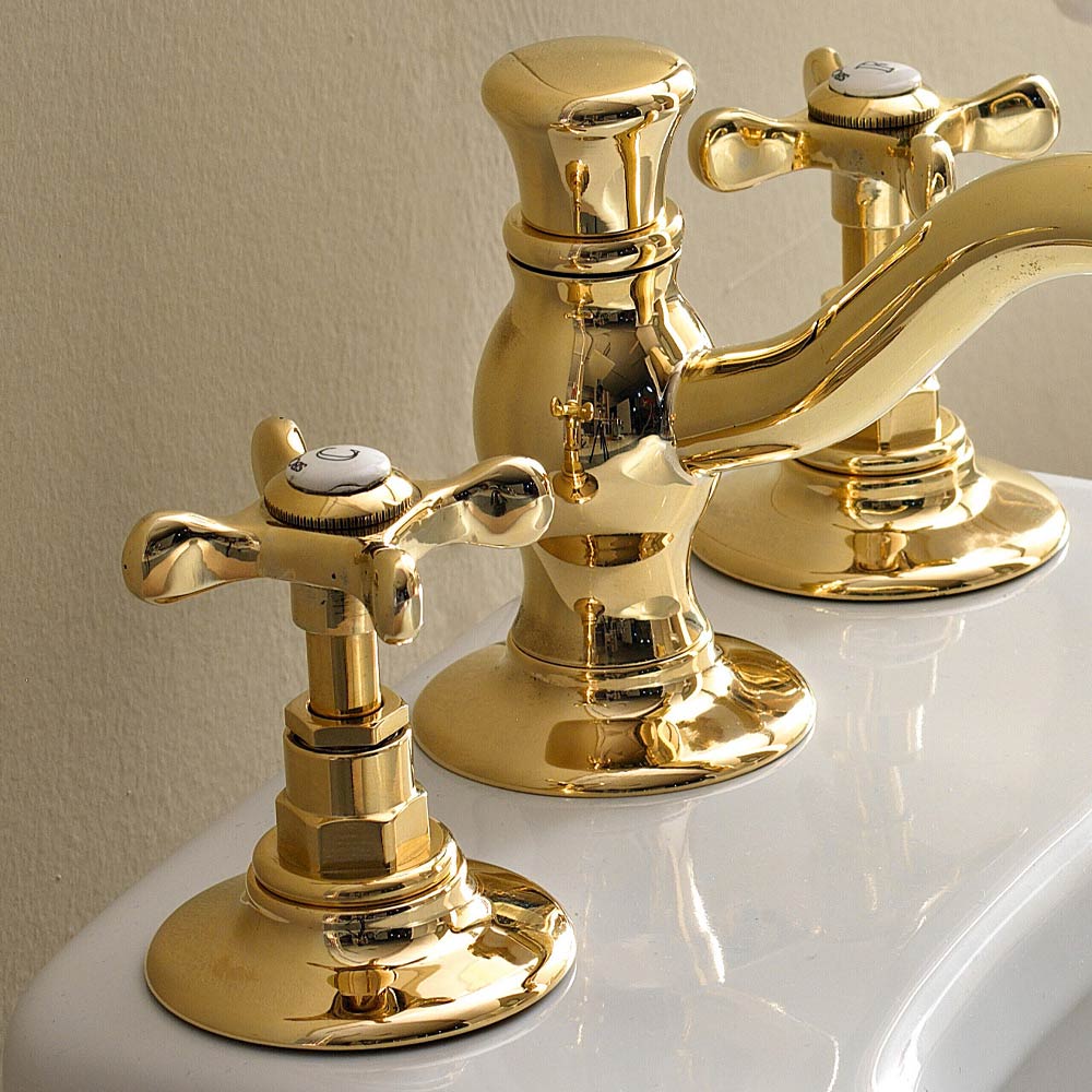Classic 3-hole bidet faucetĀ madeĀ of handcrafted brassĀ made in Italy.