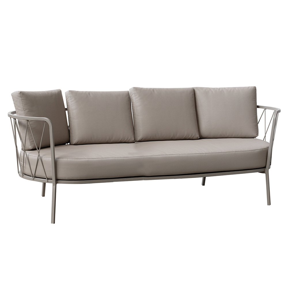Outdoor sofa made entirely in Italy . The galvanization of the steel provides the product structure with greater resistance to corrosion from atmospheric agents and the cushions made with fabrics resistant to both UV rays and water maintain their colors for a long time making the sofa a perfect furnishing accessory for any outdoor environment.