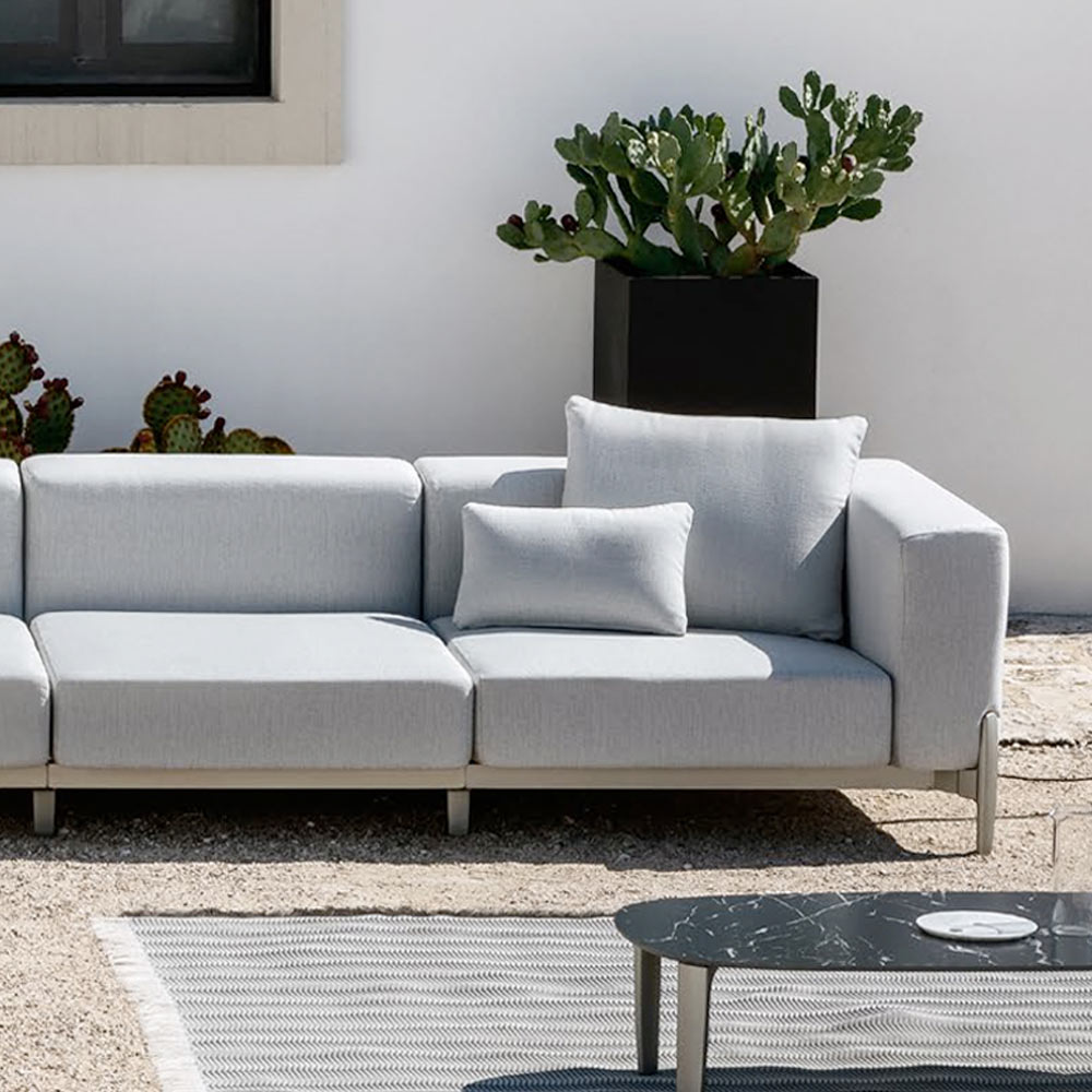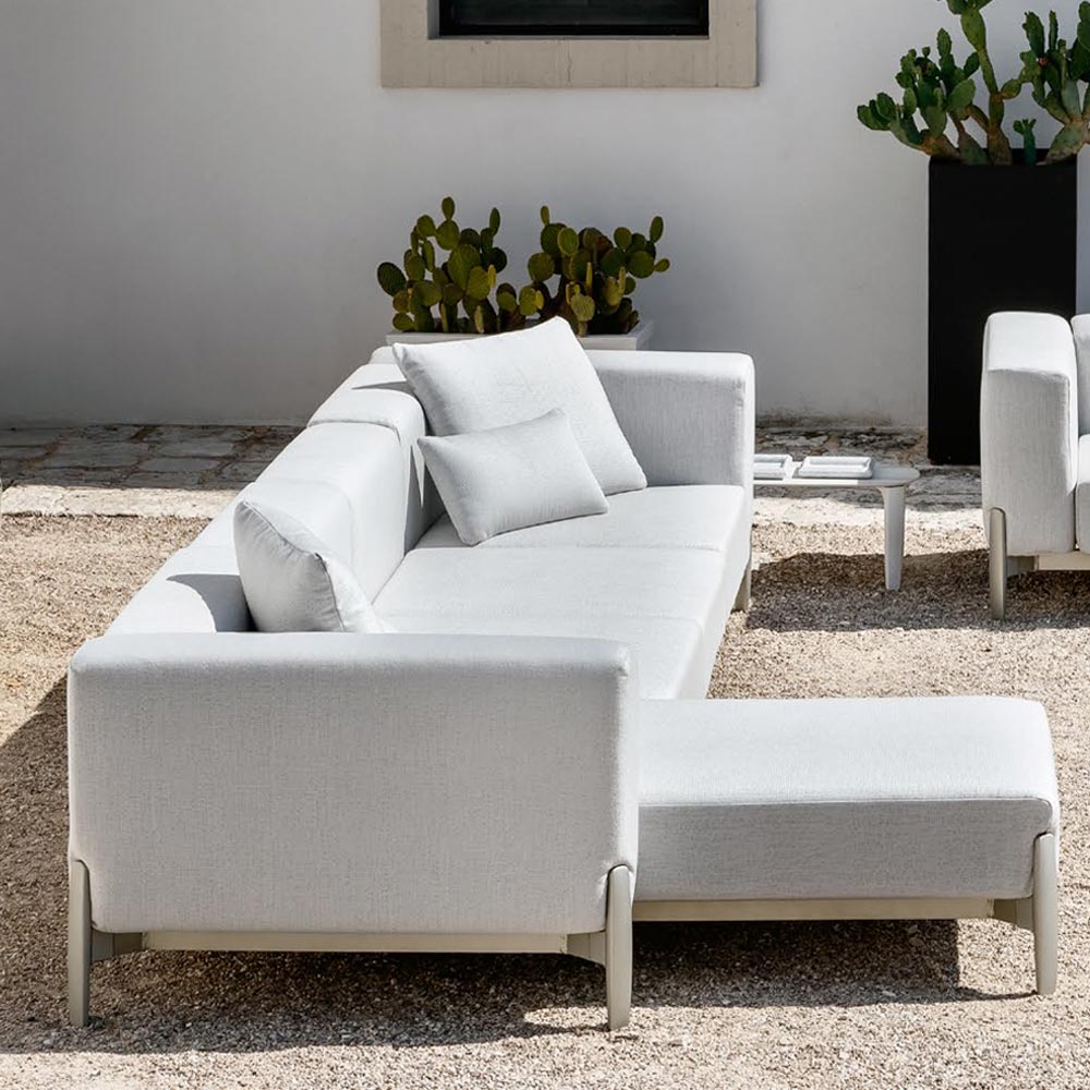 Luxury 3 seater garden sofa with chaise longue, aluminum structure and waterproof fabric made in Italy.